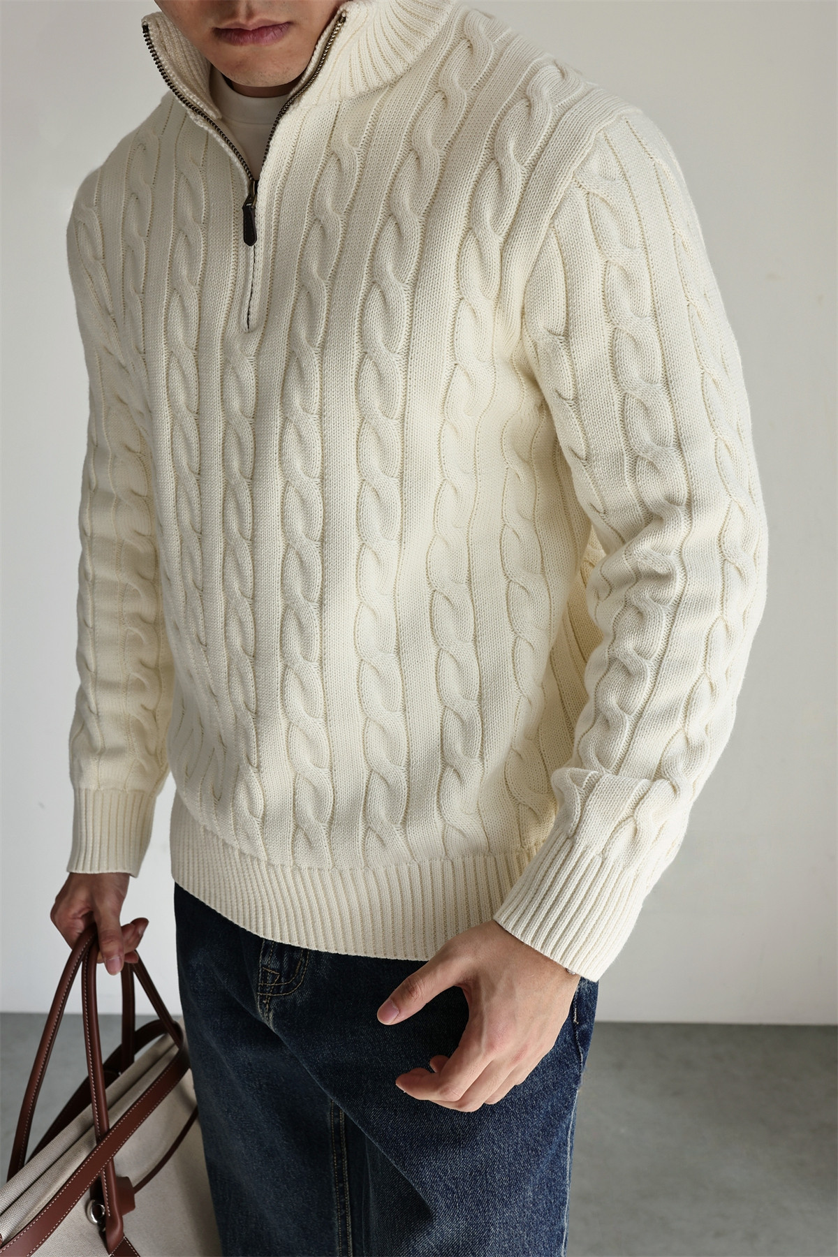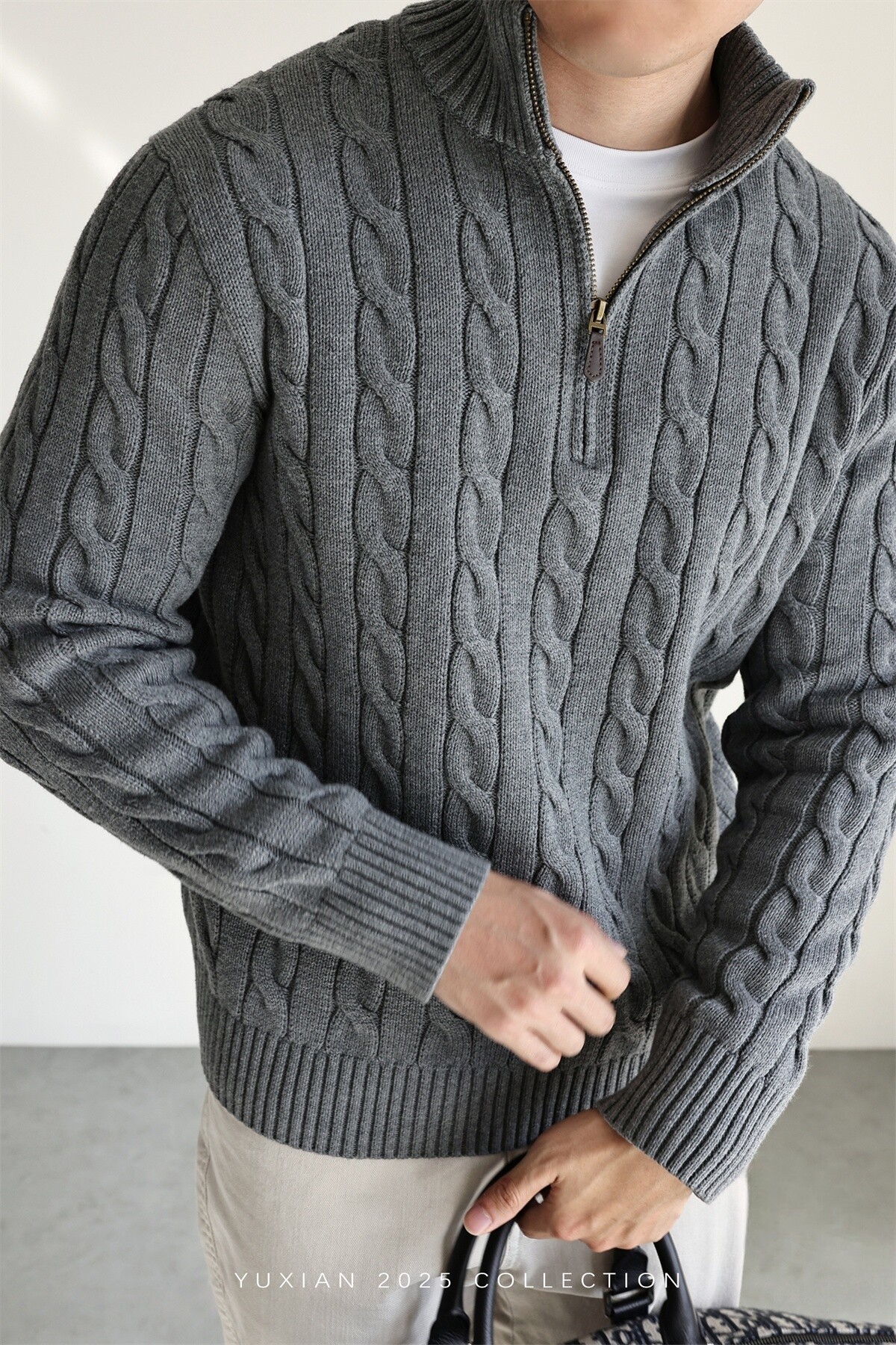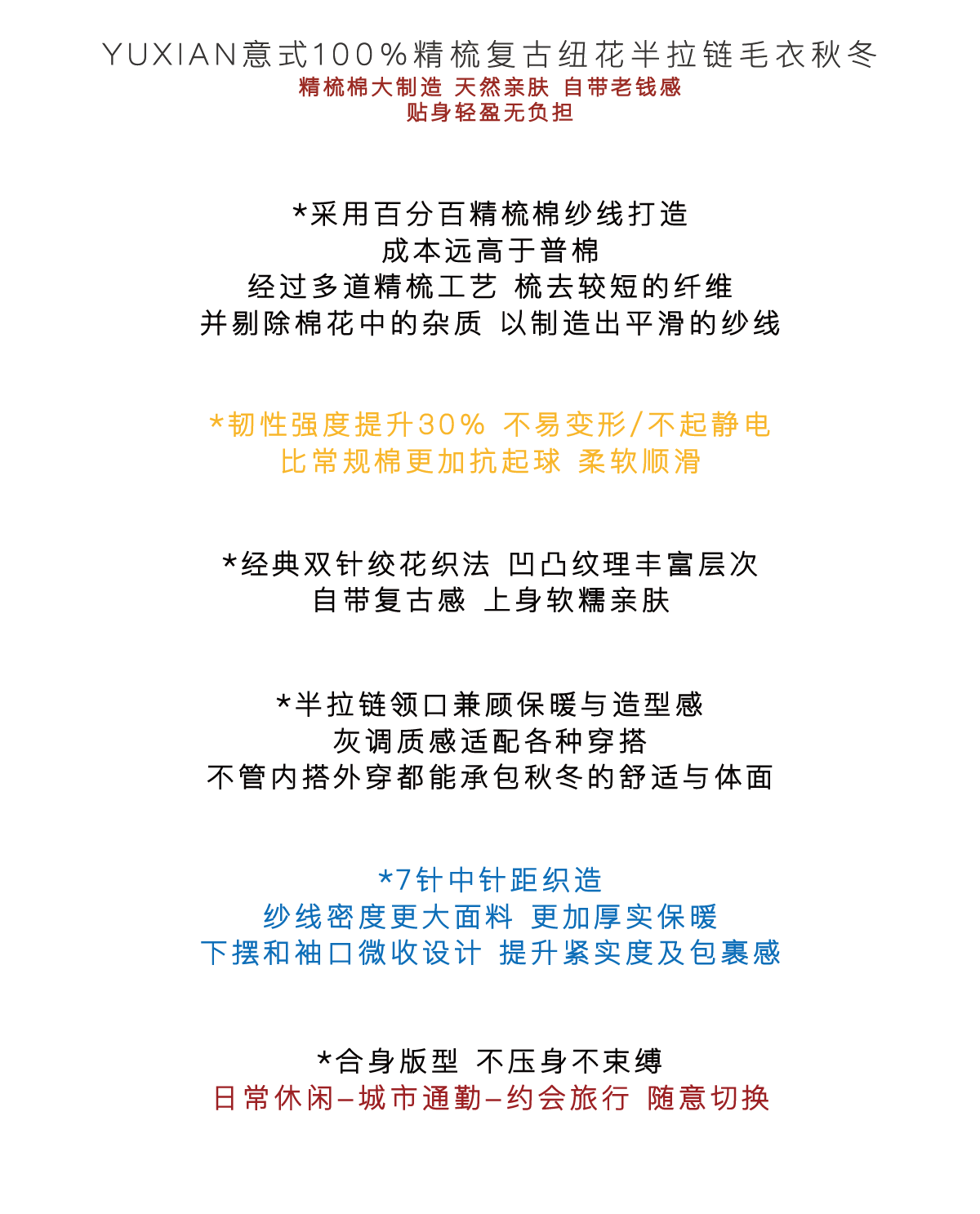 Yuxian Italian Style 100% Combed Cotton Vintage Button Half-Zip Knit Long-Sleeve Pure Cotton Sweater Vintage Autumn and Winter Men's