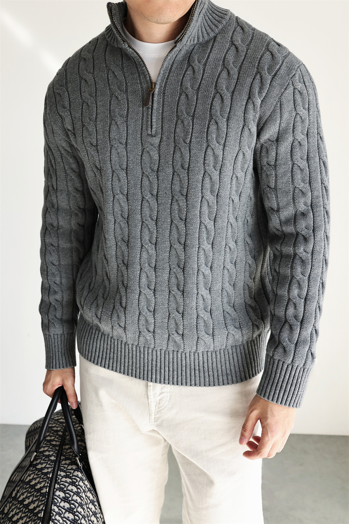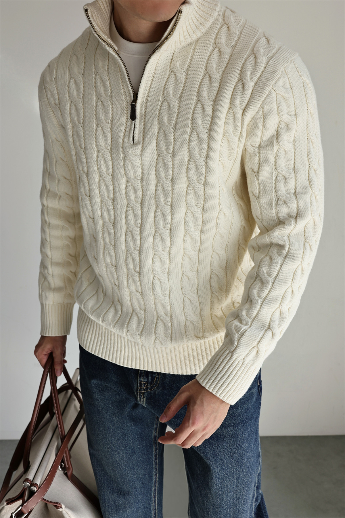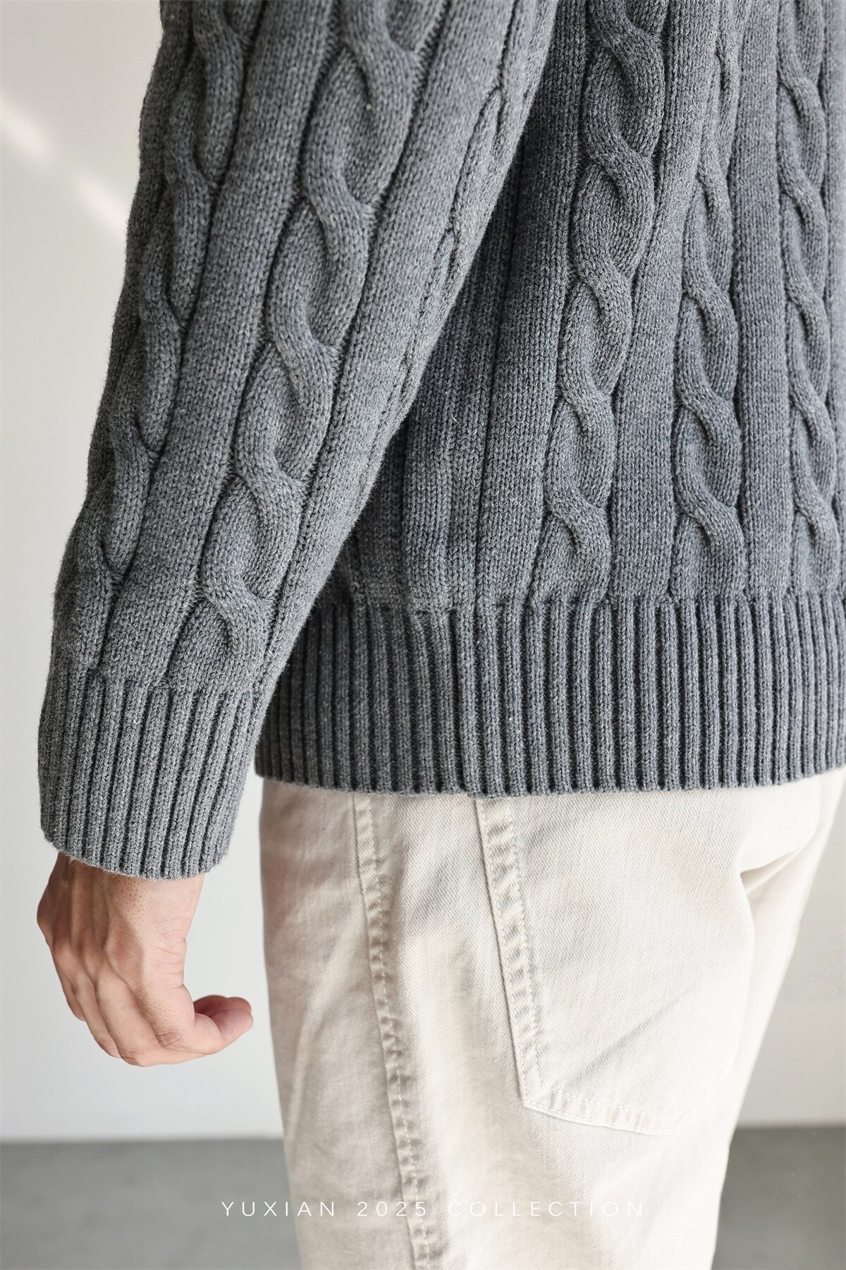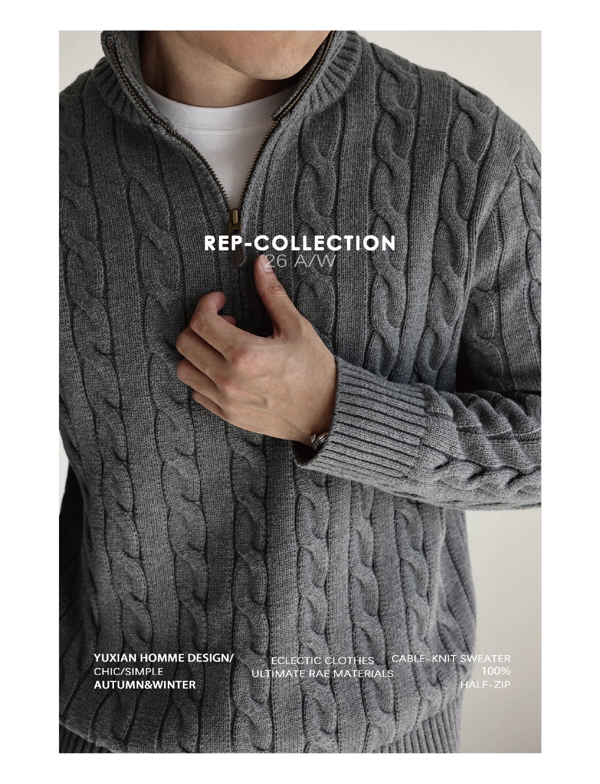 Yuxian Italian Style 100% Combed Cotton Vintage Button Half-Zip Knit Long-Sleeve Pure Cotton Sweater Vintage Autumn and Winter Men's