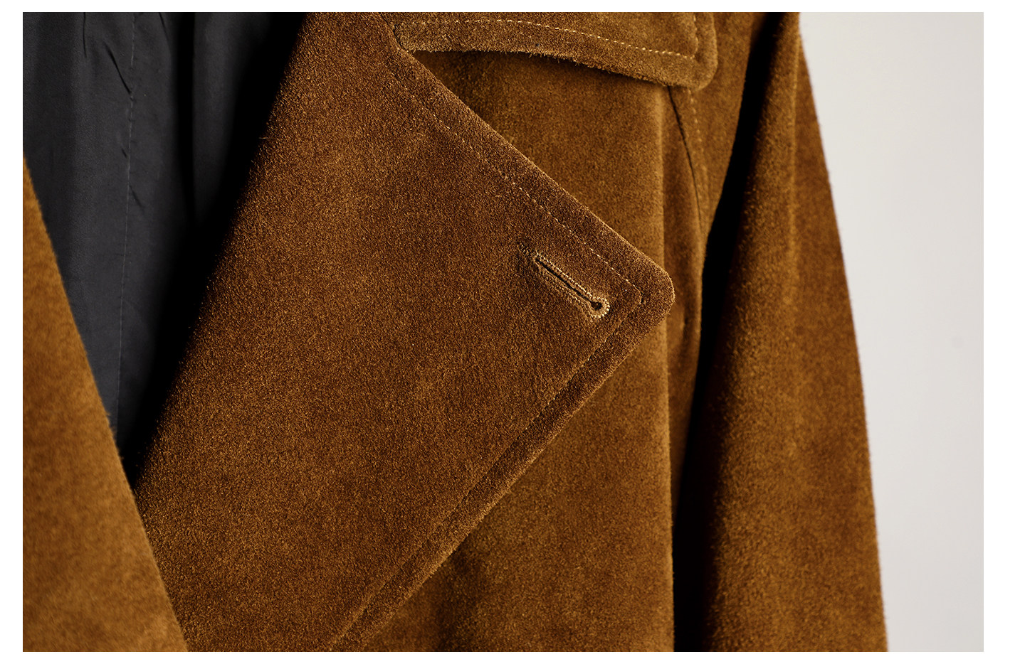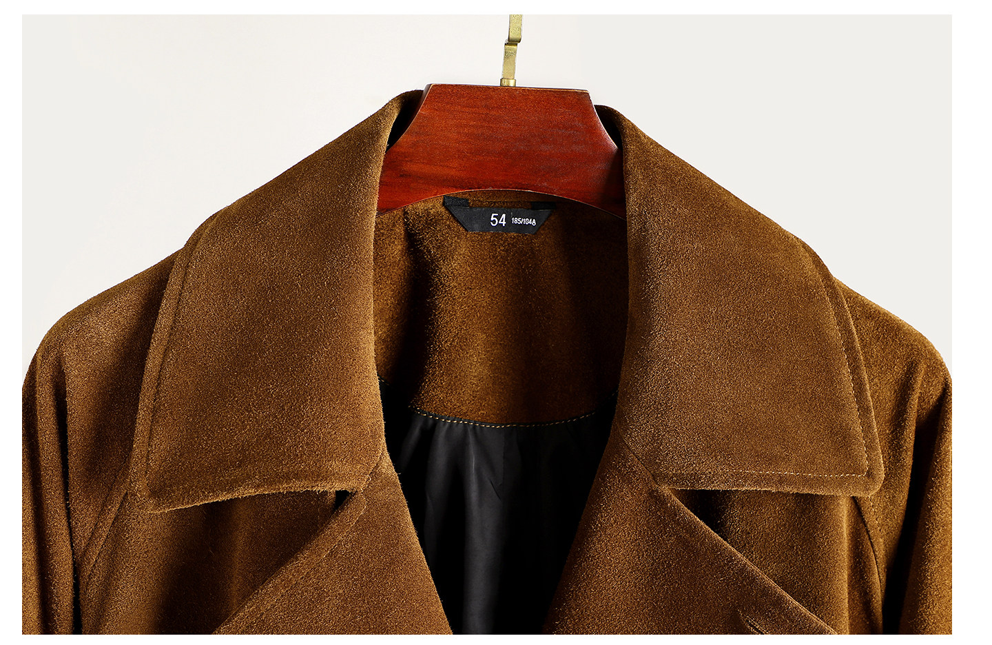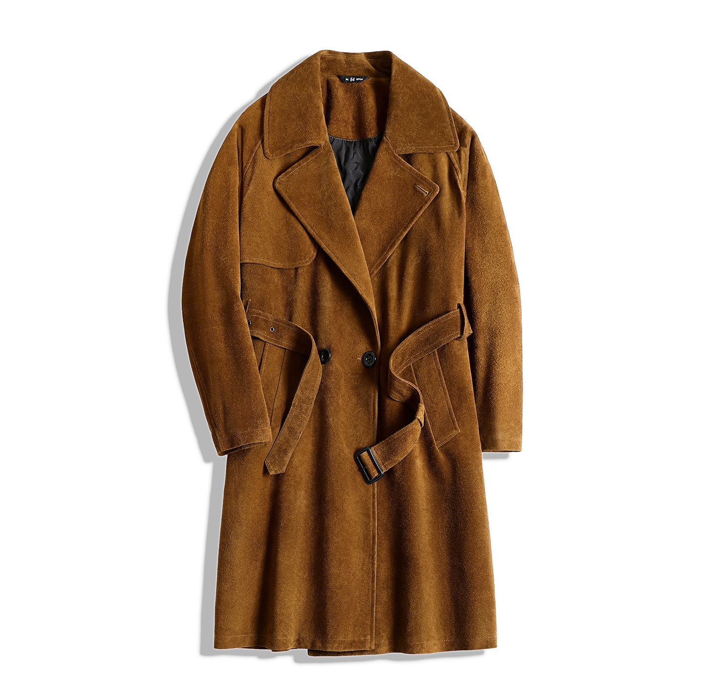 Haining First-Layer Suede Leather Trench Coat, Long Suit Collar Jacket, Caramel Color, Simple and Stylish Men's Genuine Leather Jacket