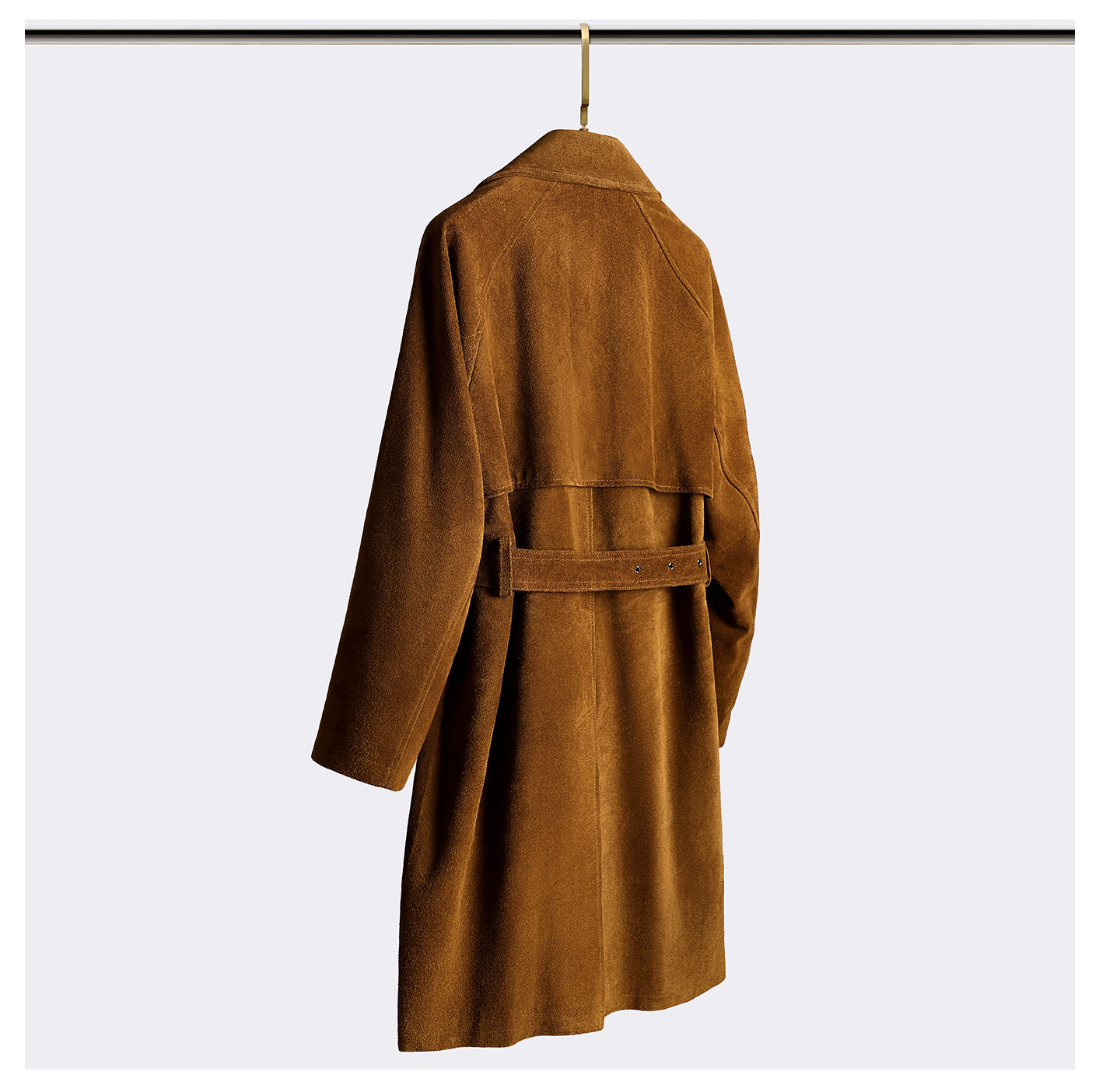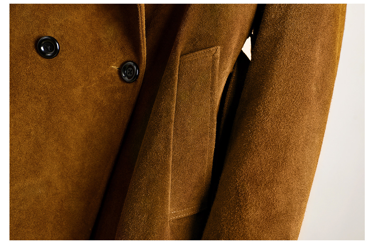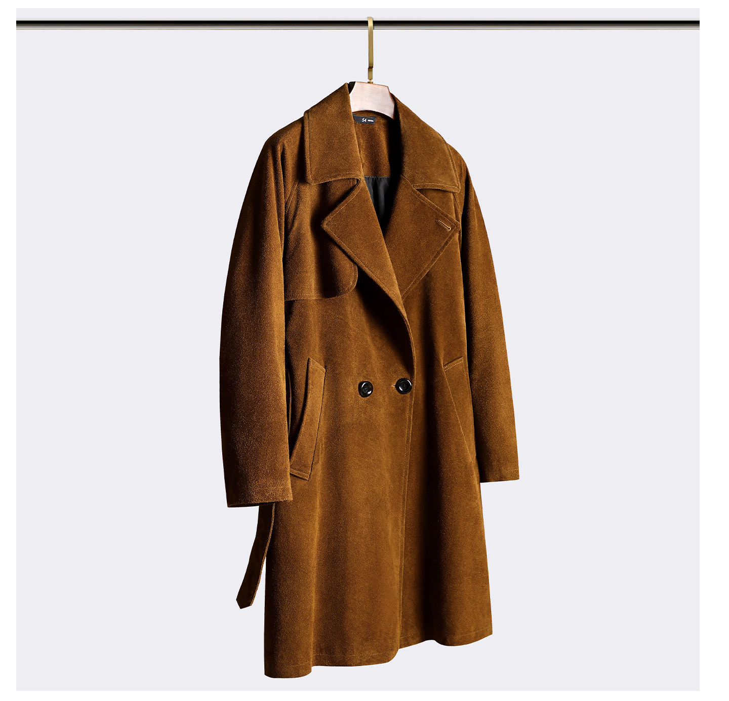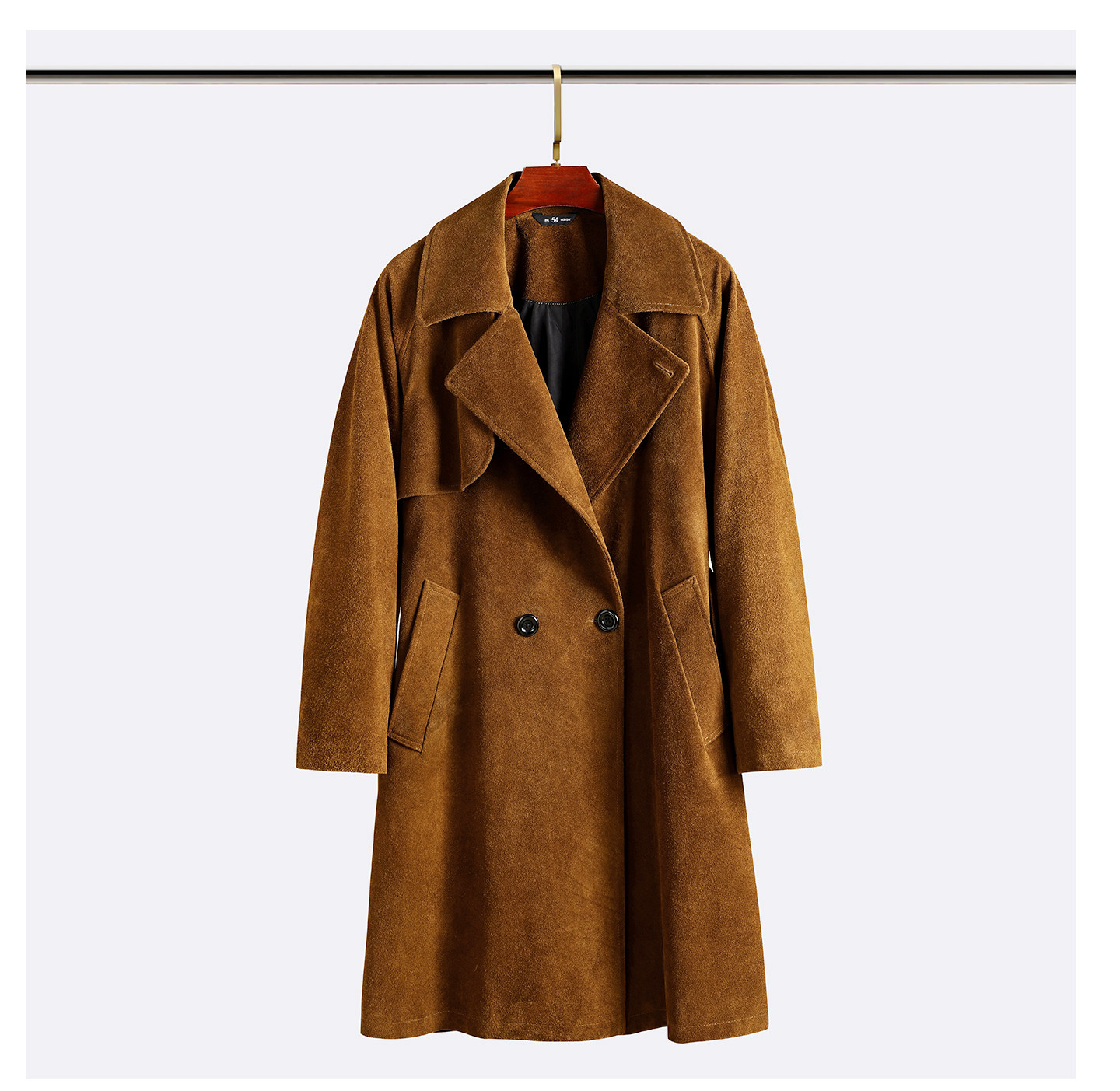 Haining First-Layer Suede Leather Trench Coat, Long Suit Collar Jacket, Caramel Color, Simple and Stylish Men's Genuine Leather Jacket