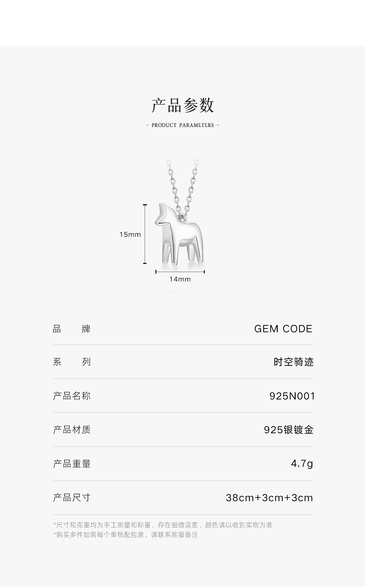 Gem Code Time and Space Riding Series 925 Silver Gold-Plated Pony Necklace Year of the Horse Zodiac Theme Jewelry Gift