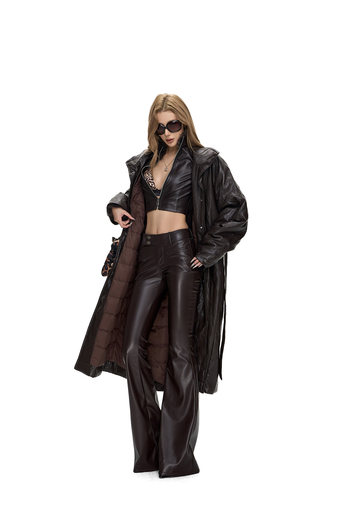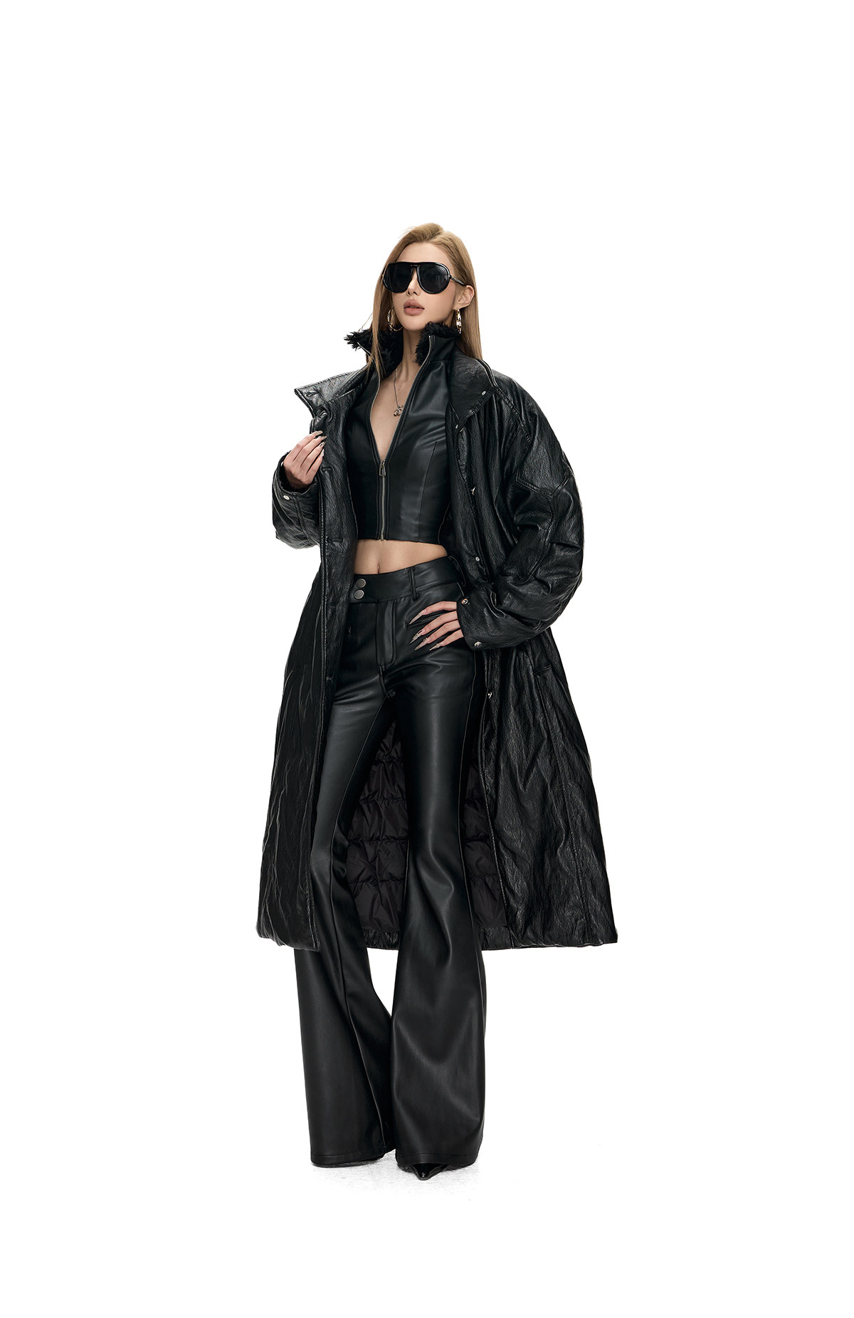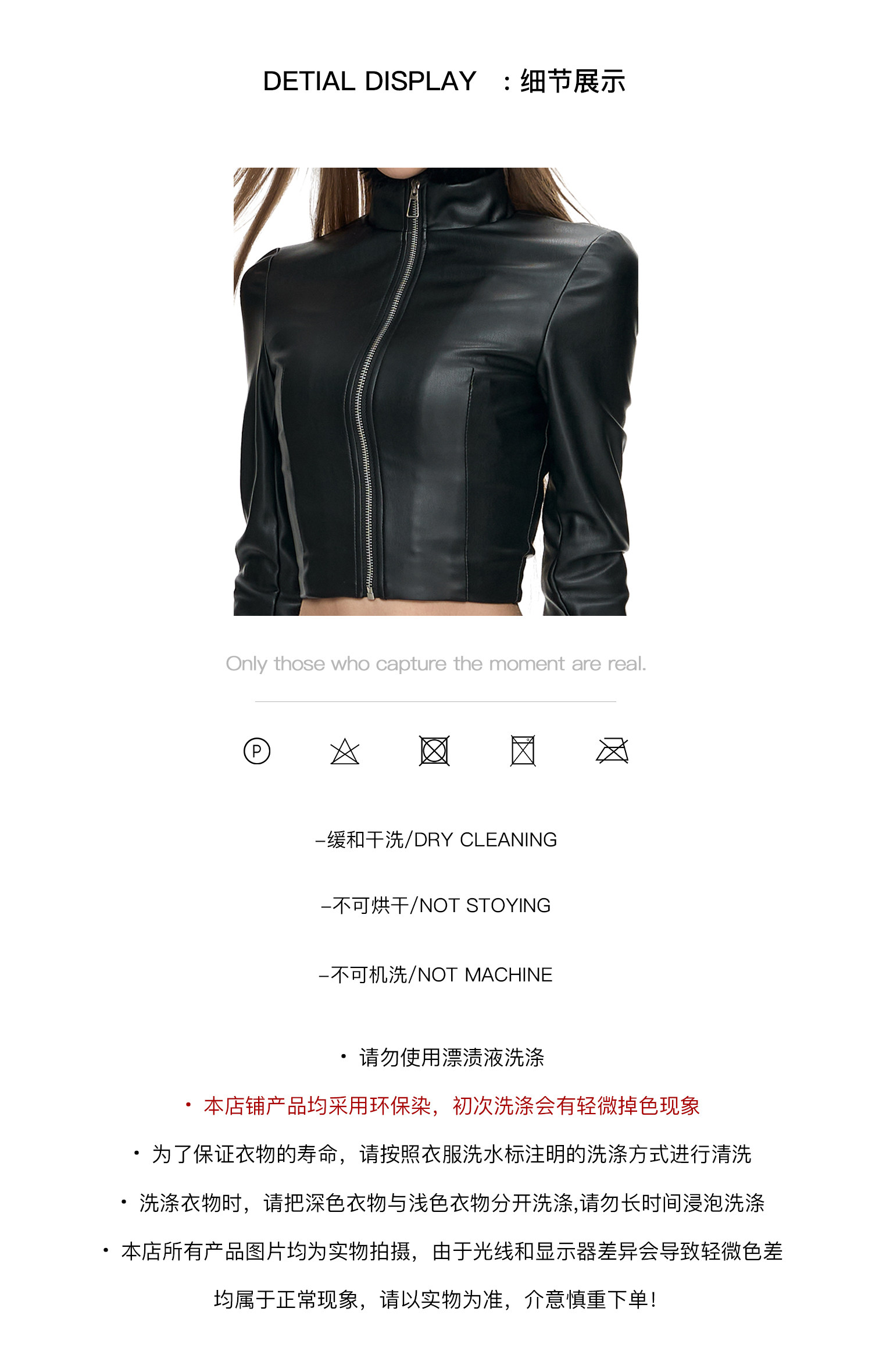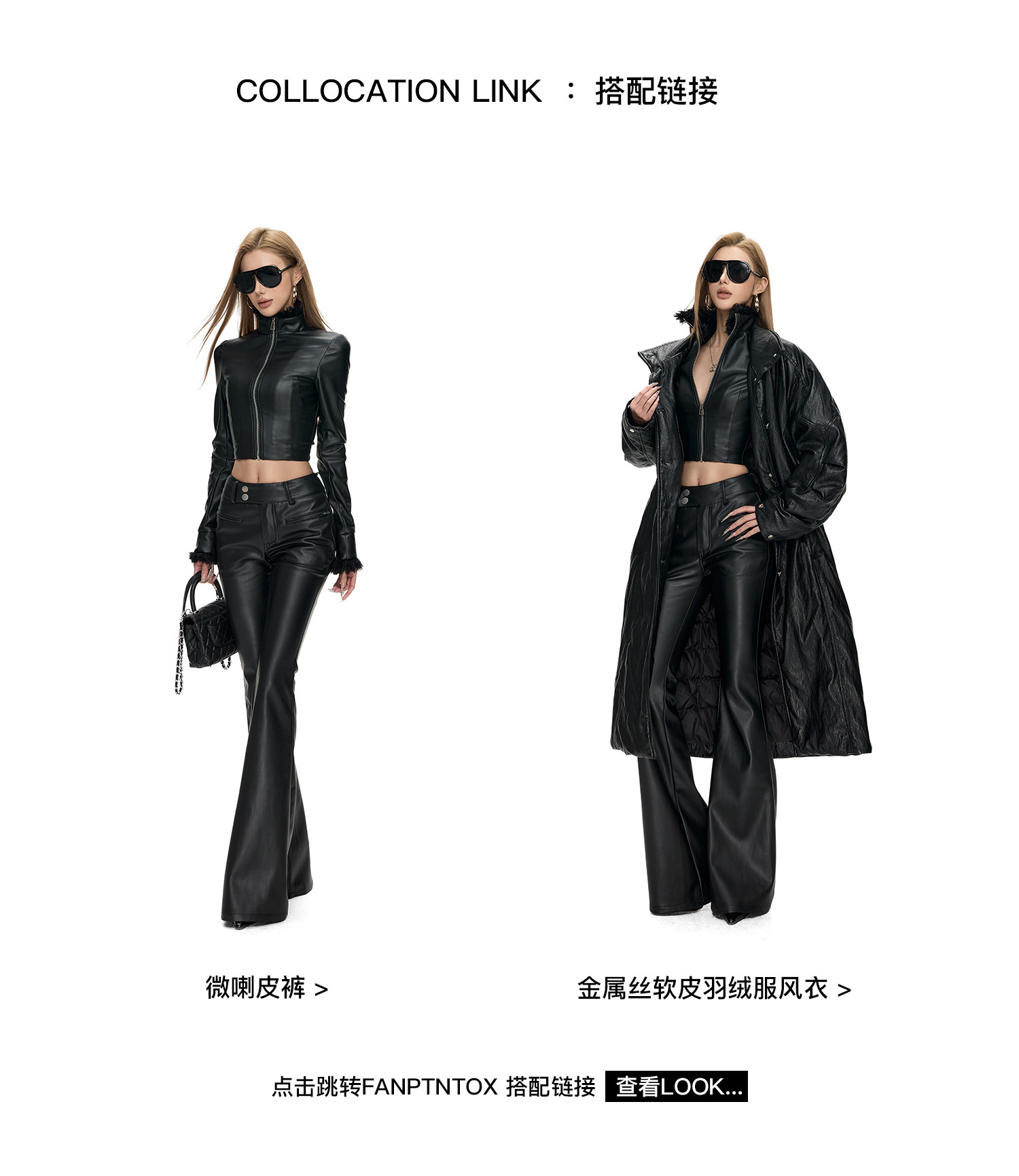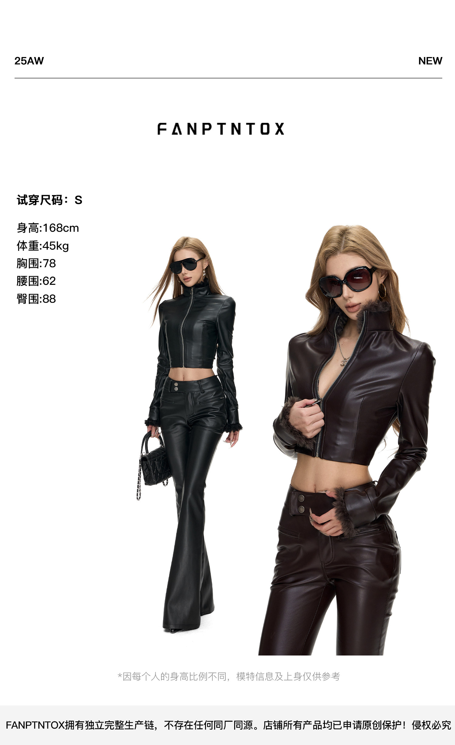 Fanptntox·Stretch Pu Leather Sexy Motorcycle Zipper Leather Jacket with Fur Stand Collar and Slim Fit