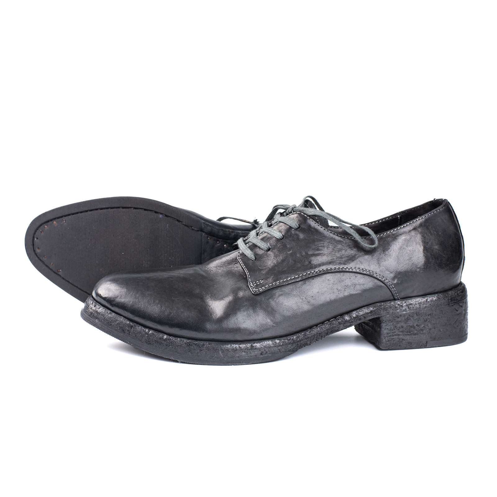 Rog Ro Pointed Toe 2600L Washed Horse Leather Low-Top Mango Toe Derby Shoes Goodyear Dark Black Avant-Garde Ccp
