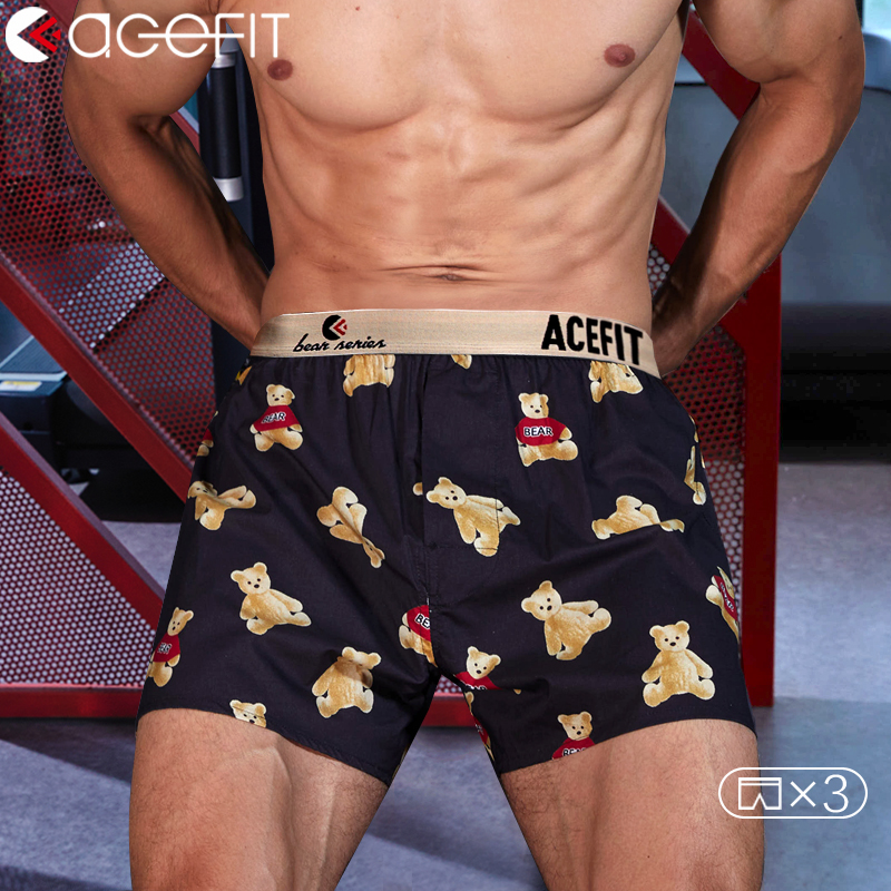 Three pieces of ACEFIT men's alo pants, cotton breathable large boxer loose underwear, boys' shorts, home pajama pants