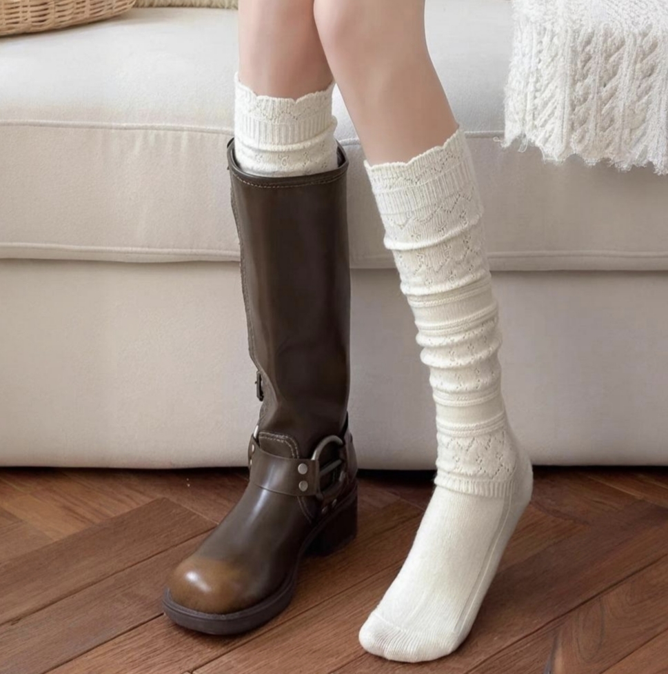 White stockings with boots, socks, women's stack socks, boots, sock covers, calf socks, high socks, boots, over the knee socks