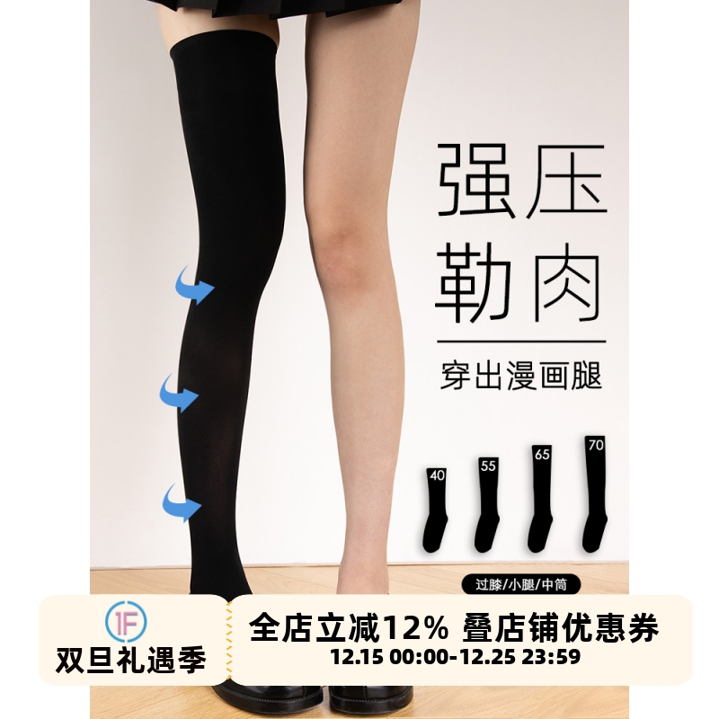 JKN pressure calf socks women's autumn and winter strong pressure slimming legs JK socks black over the knee high semi-mid stockings