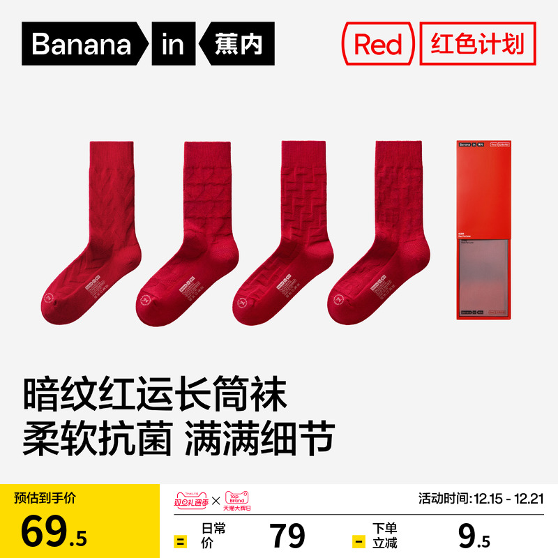 Banana red plan 521S men's and women's socks for the Year of the Horse Natal Year gift wedding stockings autumn and winter new cotton socks