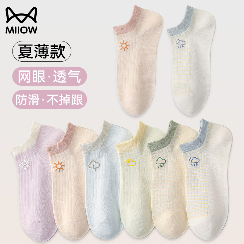 Cat man socks women's summer thin socks light and thin breathable mesh socks solid color sweat-absorbing and odor-proof do not fall off the boat socks women