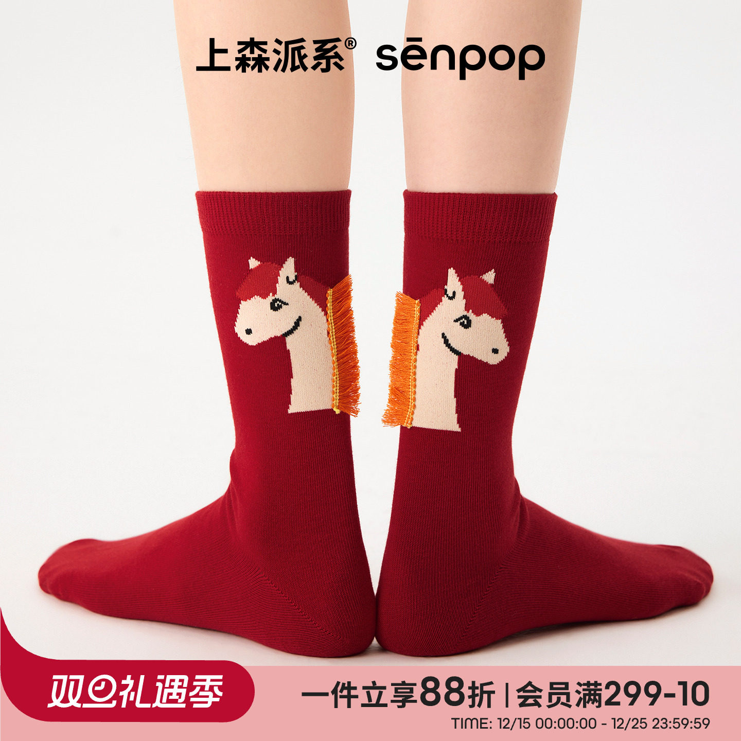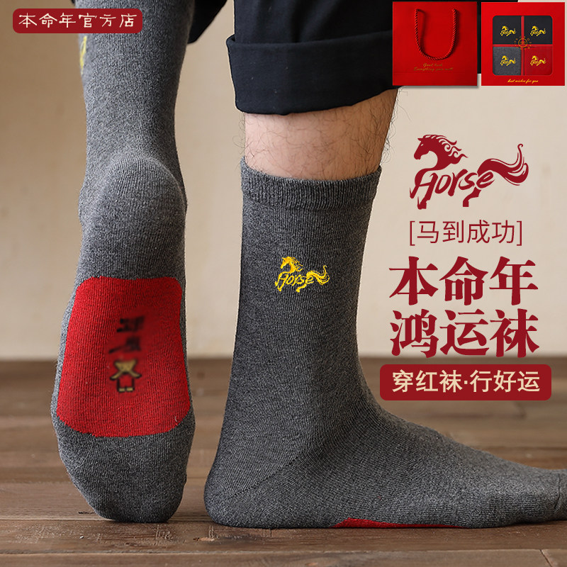 Shangmori Red Socks 2026 Year of the Horse Natal Year Gift Red Socks New Year's Gift Box Medium Socks Cotton Socks Stack Socks