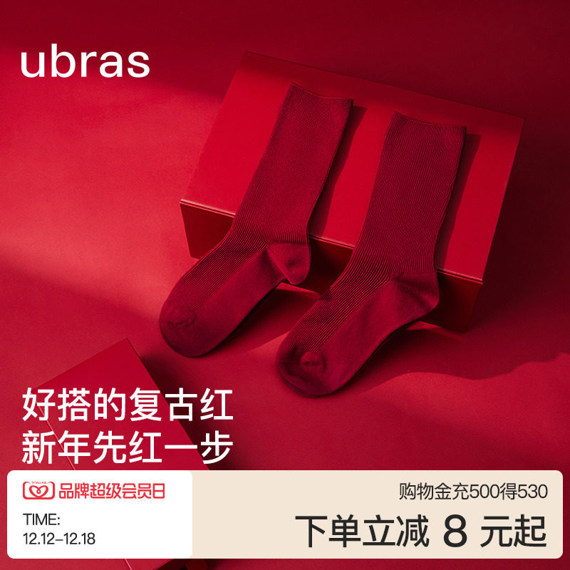ubras red series - ribbed lycra mid-tube socks couple red men's and women's red socks for the year of the horse natal year 2 pairs