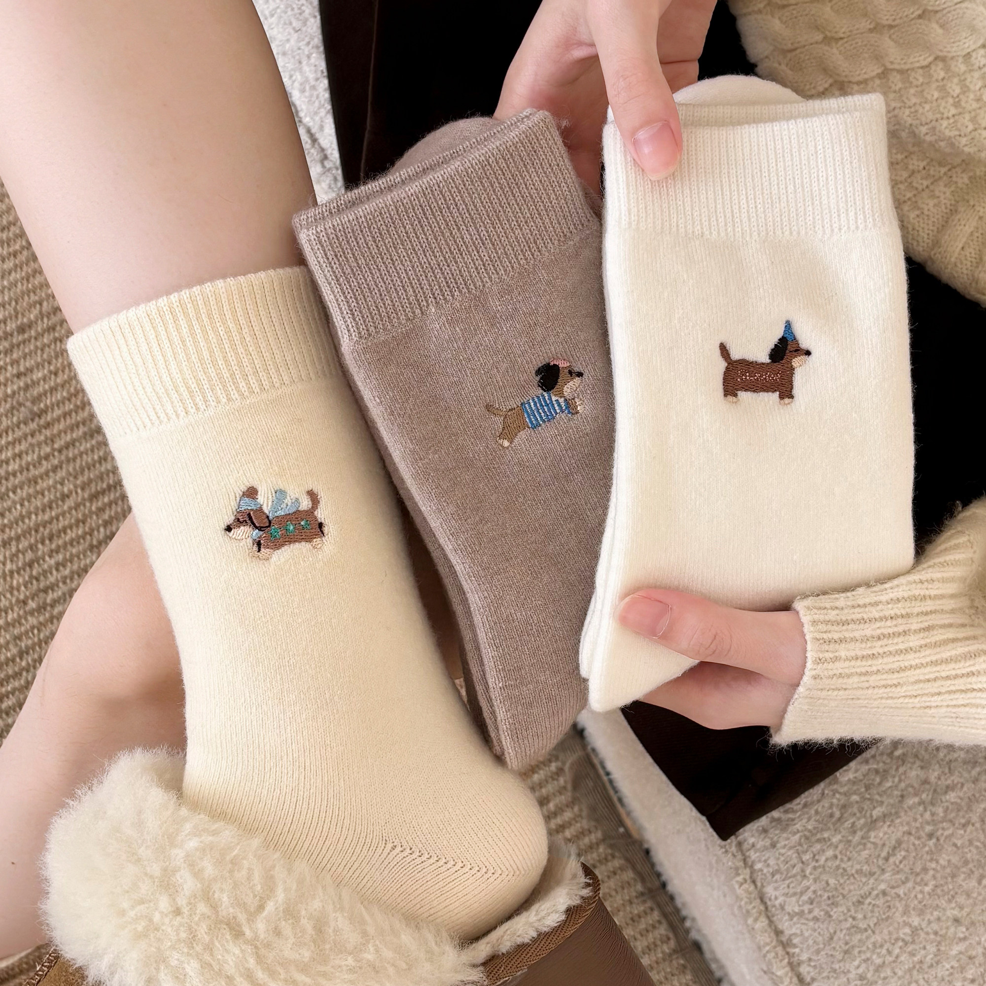 Cute socks women's mid socks fall and winter girls' puppy wool stockings 2025 new thickened women's socks