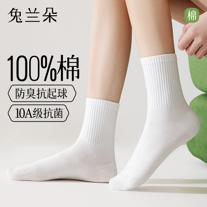 Socks, women's socks, spring and summer thin white anti-odor and antibacterial cotton, 2026 new explosive stockings for women