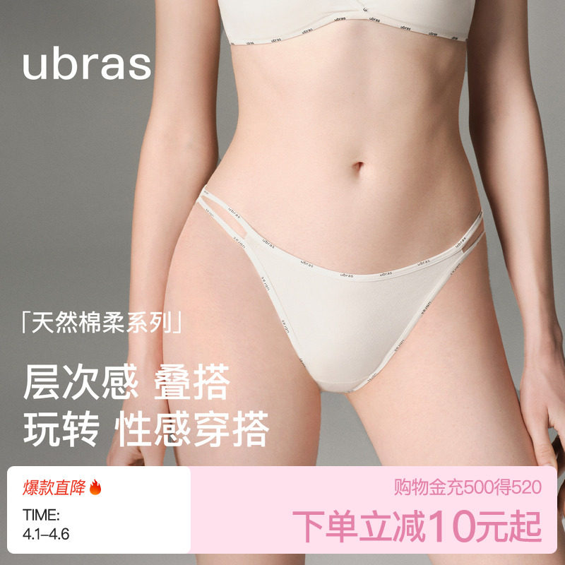 ubras Xinjiang cotton high slit cutout panties with elongated crotch sexy women's mid-rise briefs exposed new style