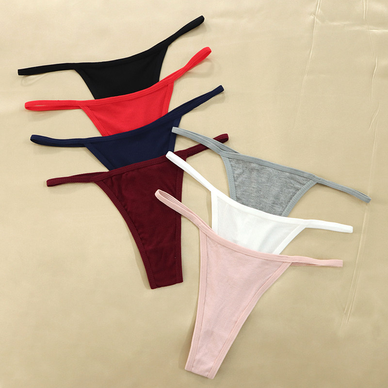 T113 foreign trade basic thin strap sexy thong low-rise cotton women's underwear solid color thread simple cross-border large size
