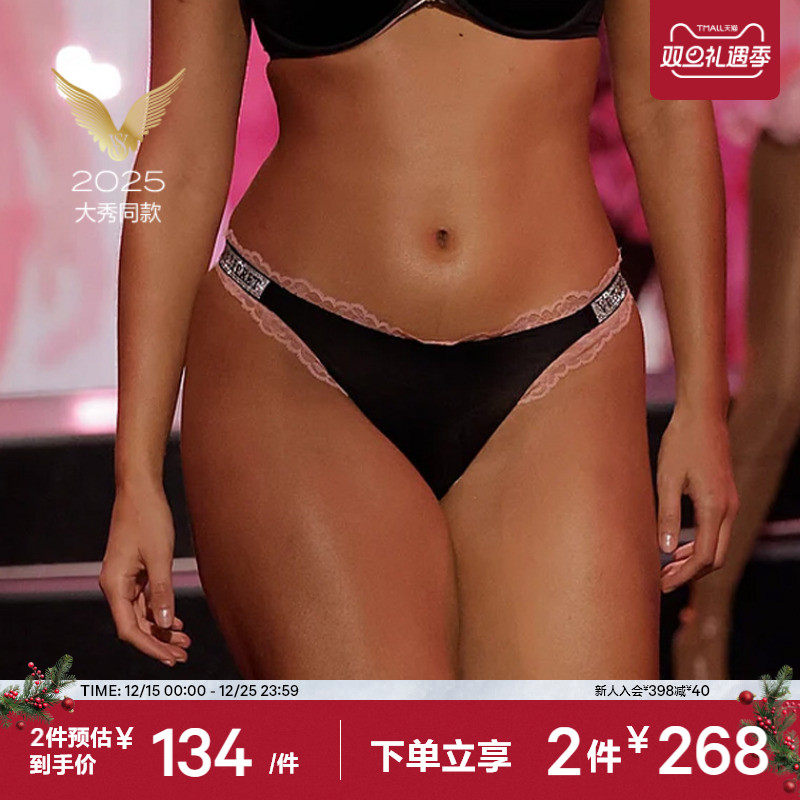 2 pieces 298|2025 Victoria's Secret Show Series String Belt Shiny Sexy Low-rise Half-Hip Covering Panties Women's Autumn