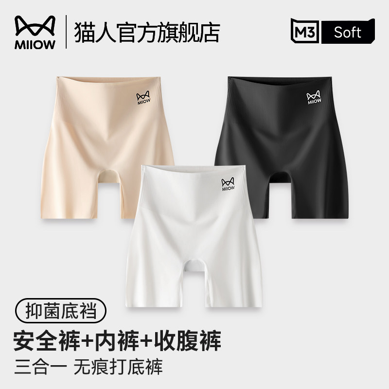 Cat man short seamless safety pants, women's anti-exposure ice silk belly, mid-waisted short skirt, leggings, boxers, shorts, shorts
