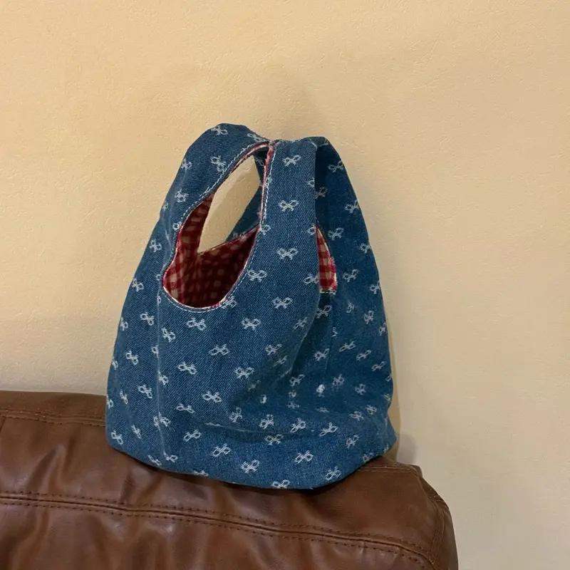 Cute new denim kitty commuter embroidery bag storage outing contrast portable coin purse TJ