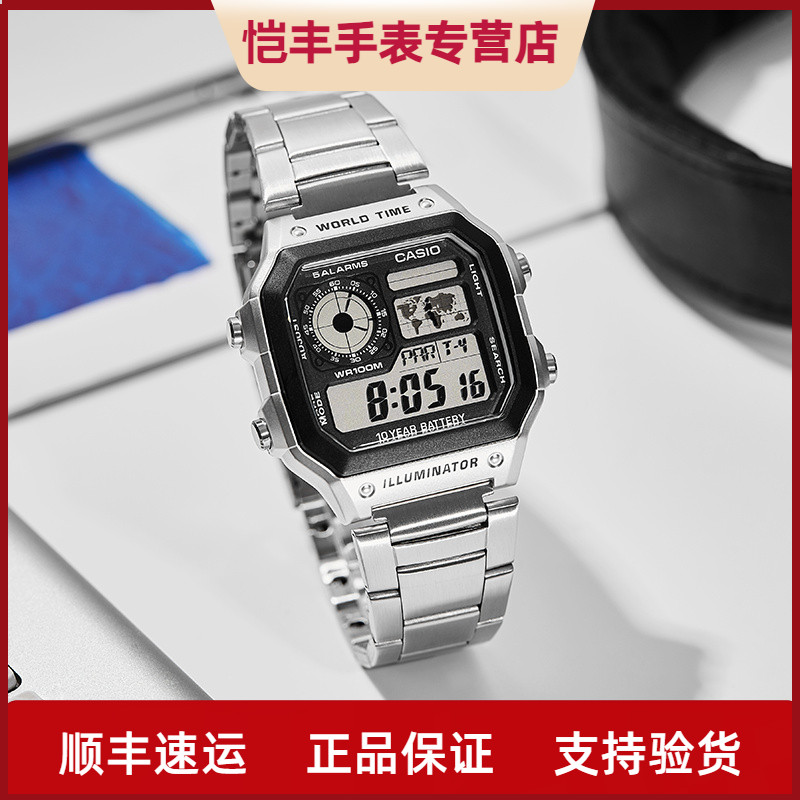 Casio small square watch retro sports student watch Crazy the same electronic watch AE-1200WHD-1A