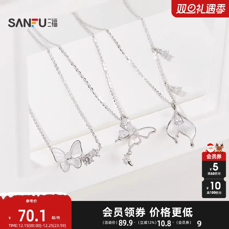 Sanfu 925 silver lacquered garden short necklace single piece elegant temperament jewelry accessory chain