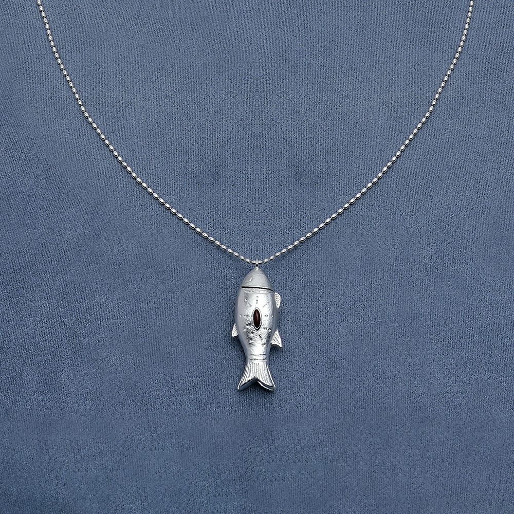 SALE E PEPE Pepper & Salt Sterling Silver Fat Fish Box Pendant Necklace