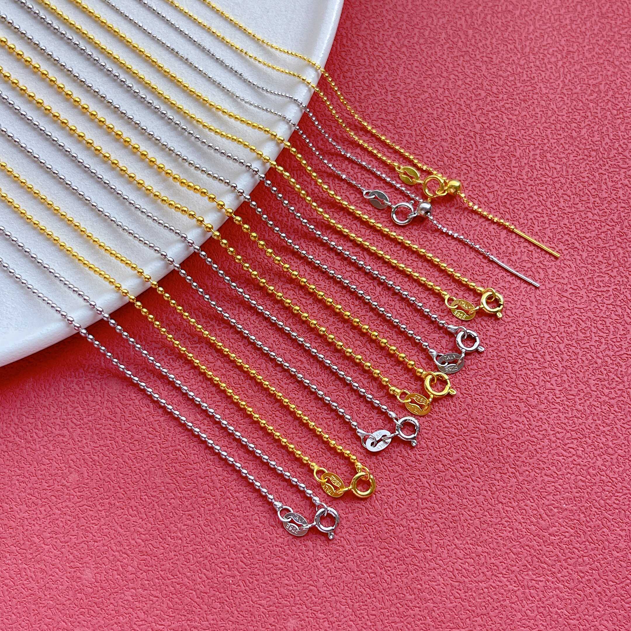 S925 sterling silver burst laser bead chain necklace female bean bead pin type universal clavicle chain necklace sweater chain