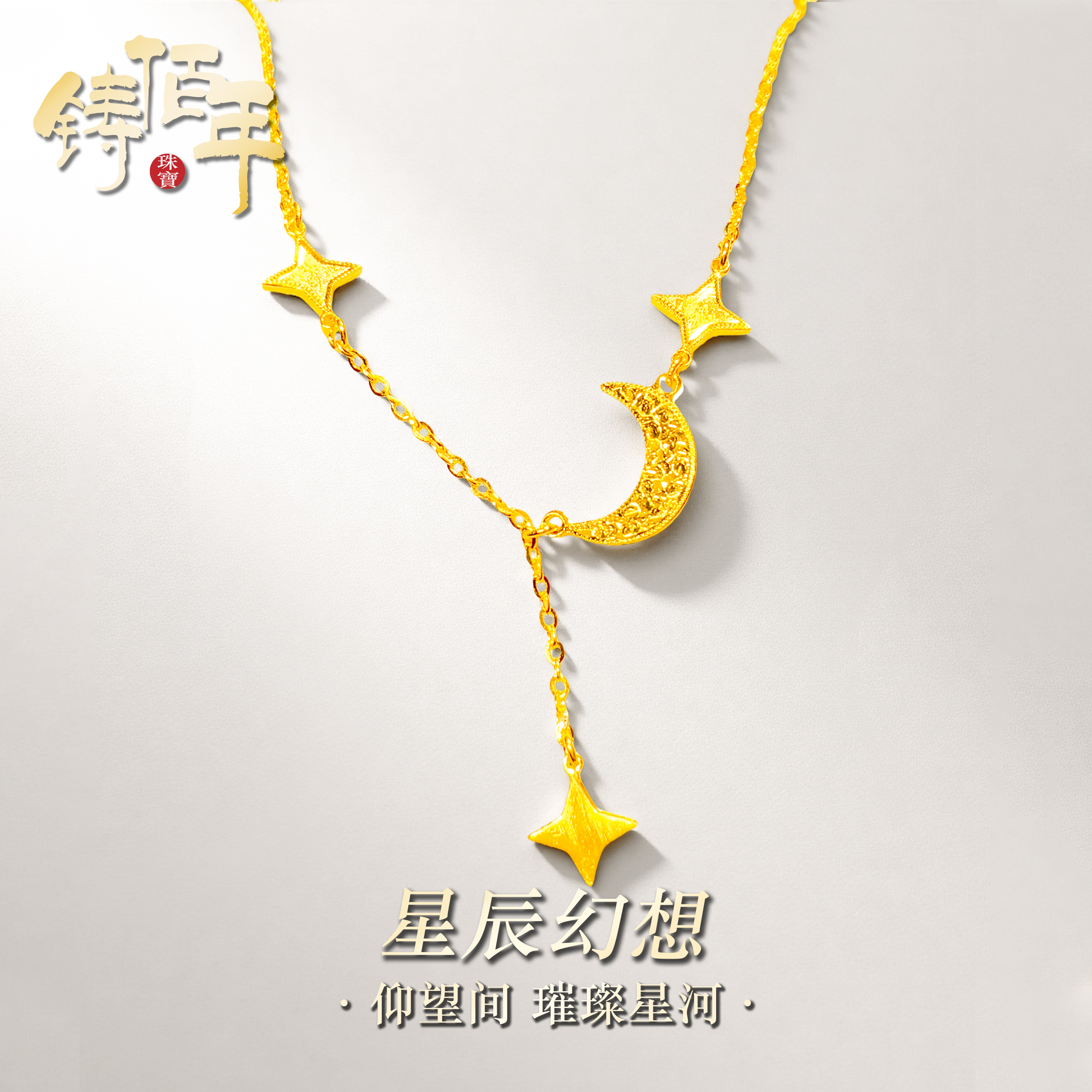 Gold bag silver crushed ice star moon necklace new Chinese exquisite four-pointed star tassel collarbone chain high-end sense versatile woman