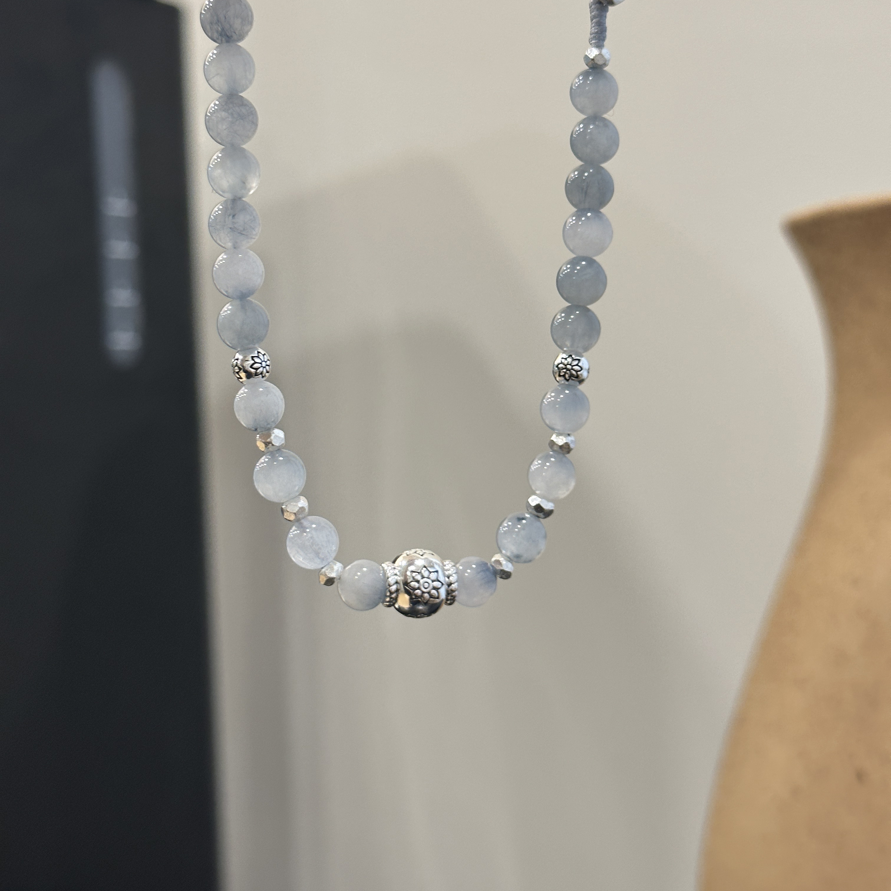 JANENG Chasing Shore 925 Silver Coffee Bean Splicing Necklace Retro Distressed Unisex Men's and Women's Summer Playful Combination