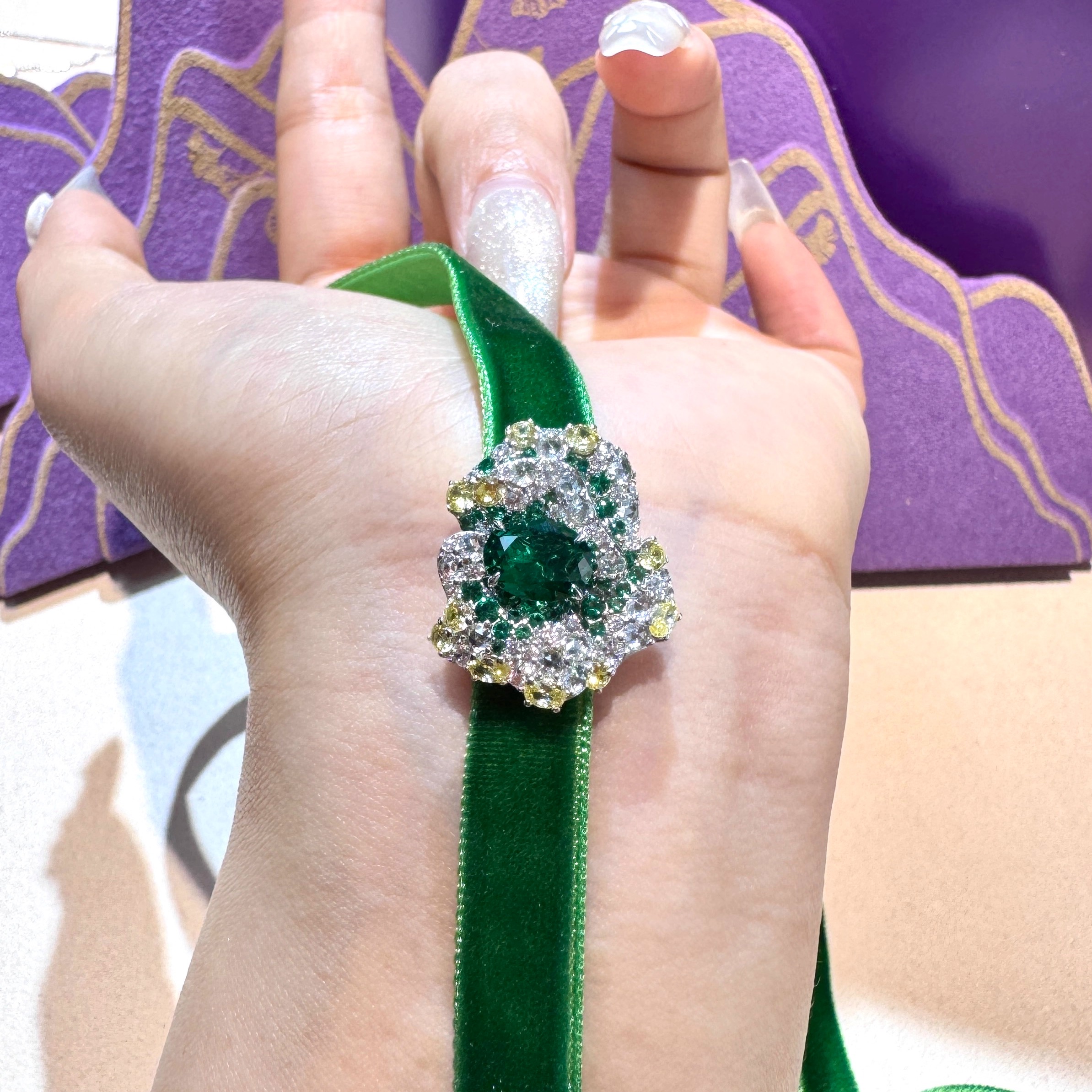 High-end emerald pendant choker choker emerald necklace necklace green diamond flower bracelet wristband dual-purpose