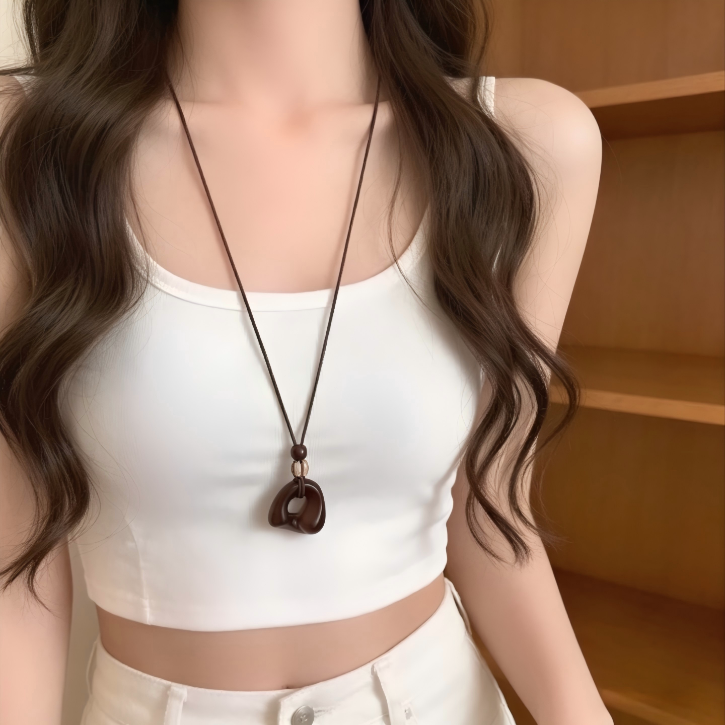 Necklace women's irregular pendant sweater chain autumn and winter Zen coffee color women's high-end long halterneck accessories