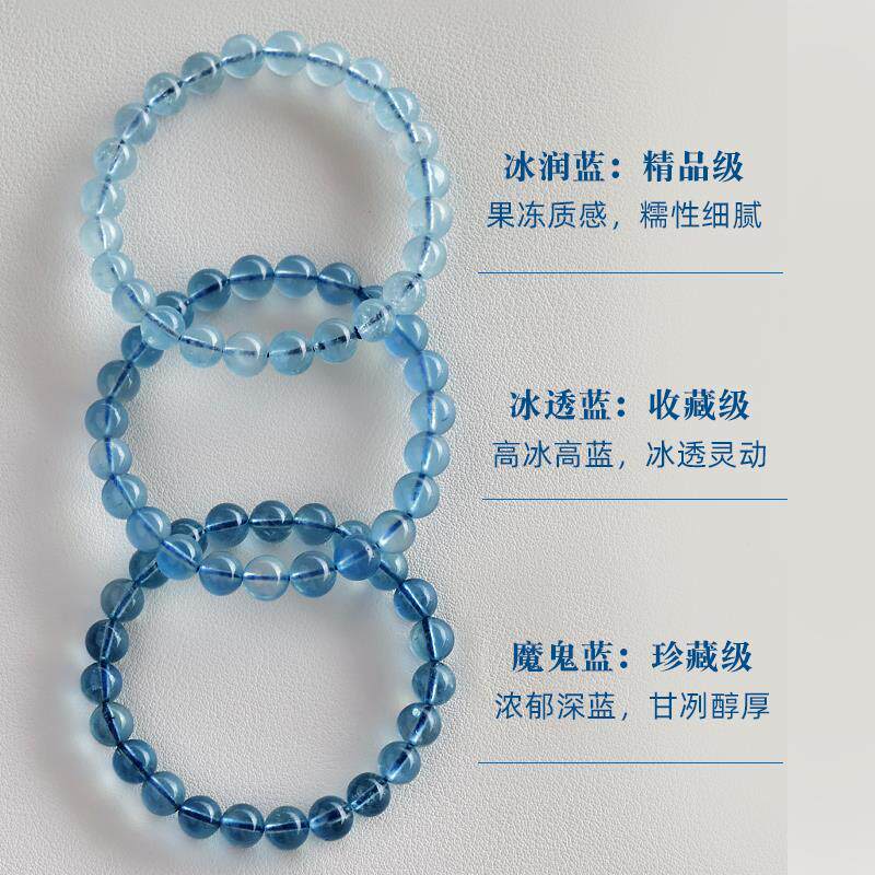 Putuo Mountain Natural Aquamarine Bracelet Women's and Men's Same Aquamarine Blue Crystal Ice Seed Devil Blue