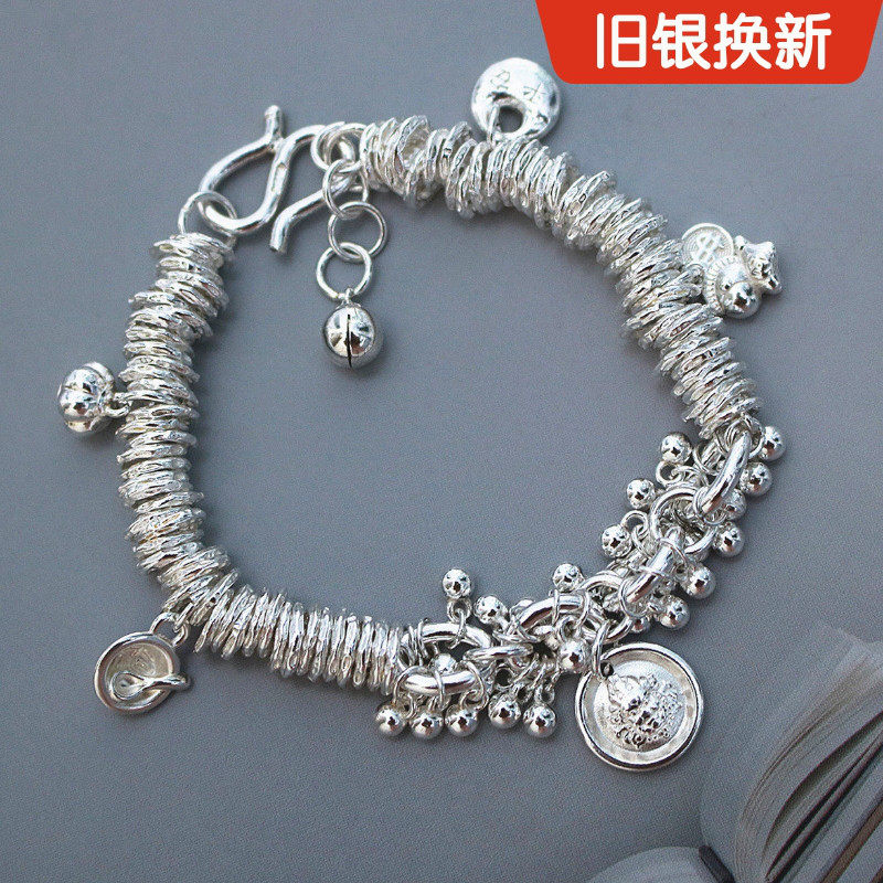 S999 fruitful yellow God of Wealth immediately has money, pumpkin peace lock, solid coiled sterling silver bracelet, foot silver bracelet