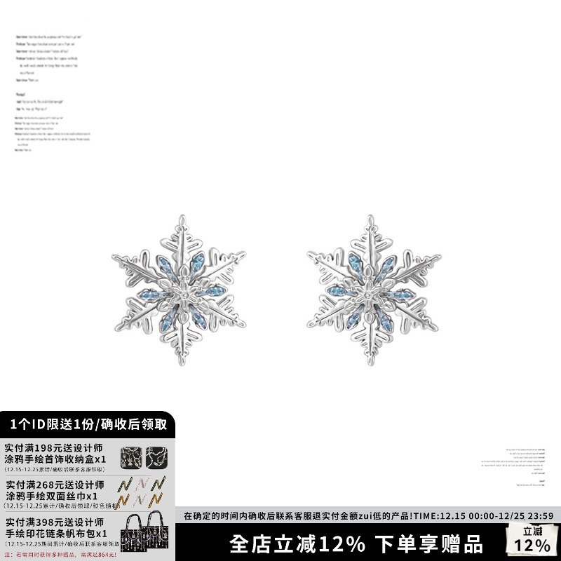 SUMIYAKI snowflake small stud earrings cool down for spring and summer blue high-end New Year's snowflake earrings earrings for women