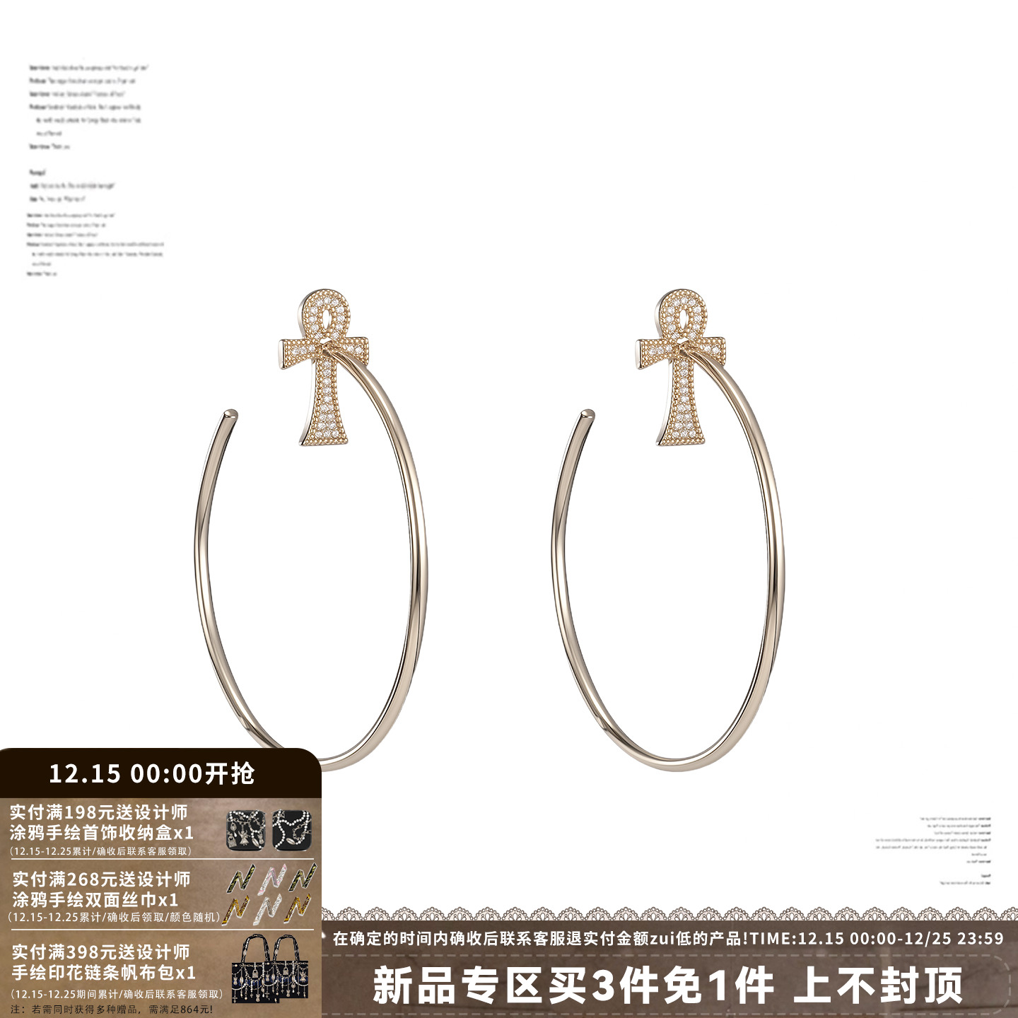 SUMIYAKI full diamond anka cross earrings slim face small big earring girl