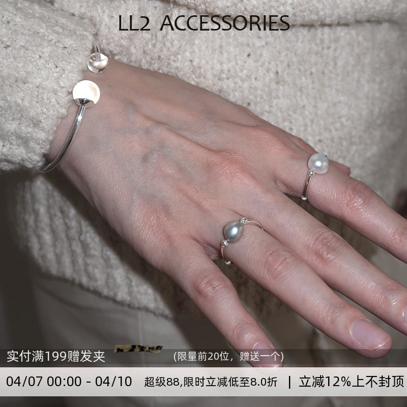 LL2 ACCESSORIES 925 silver silver grey natural freshwater pearl ring women's silver bead beaded index finger ring