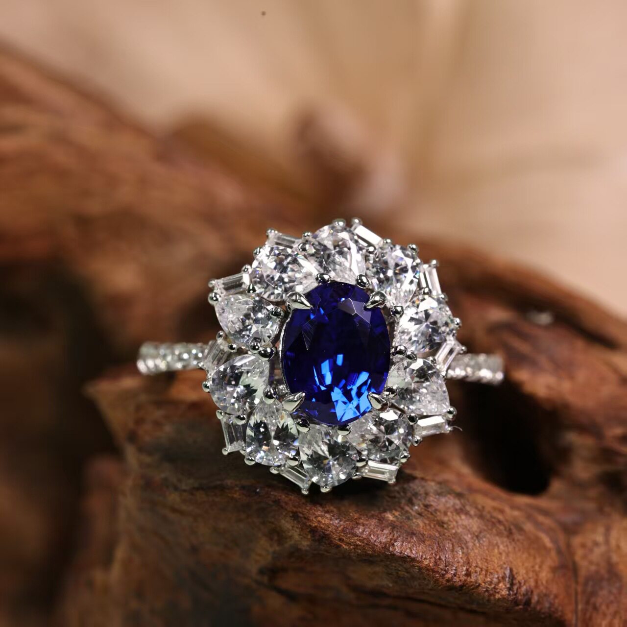 S925 silver 1.4ct lab-grown sapphire ring vintage light luxury laboratory colored gemstone index ring