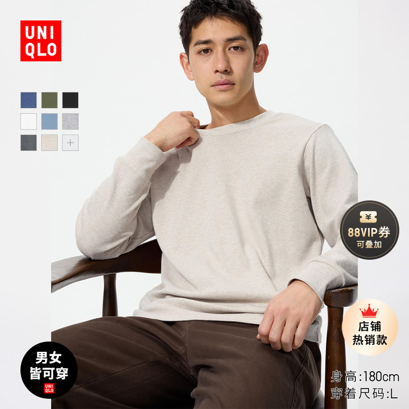 Uniqlo Men's Women's Soft Crew Neck T-Shirt/Casual Long Sleeve Top 25 Fall/Winter New 479783
