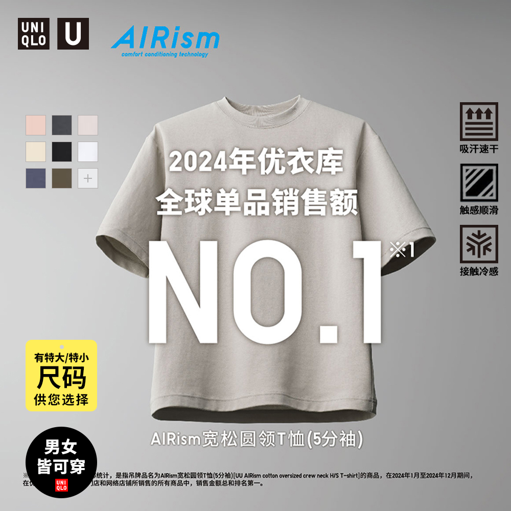Uniqlo Men's and Women's Fashion Master T AIRism Loose Crew Neck T-Shirt Cropped Sleeves Short Sleeve 475355 465185