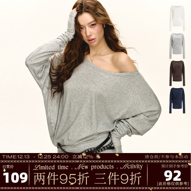 Ariseism American Vintage Solid Color Loose Off-the-Shoulder Long Sleeve T-Shirt Women's Fall New Versatile Casual Top