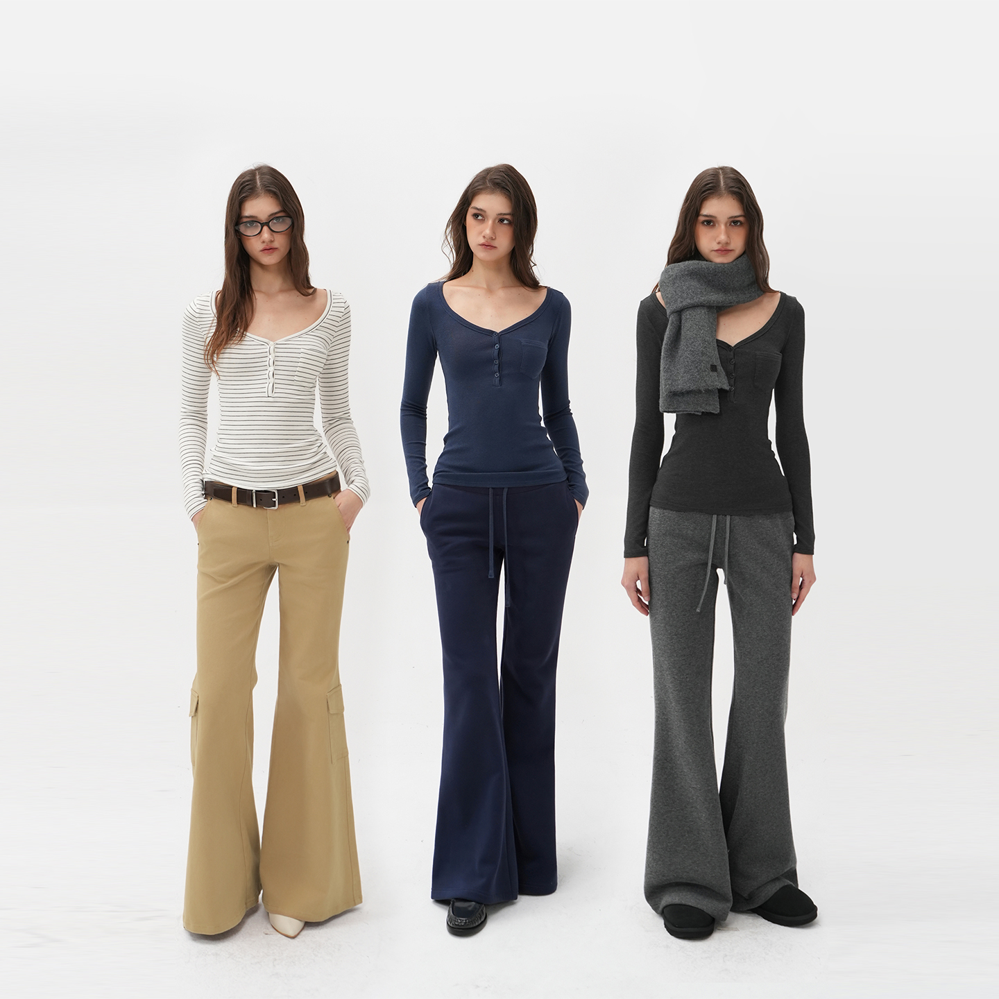 Jim Kennet, three-color big V-neck, shoulder stretch, slim bottom, Henry T