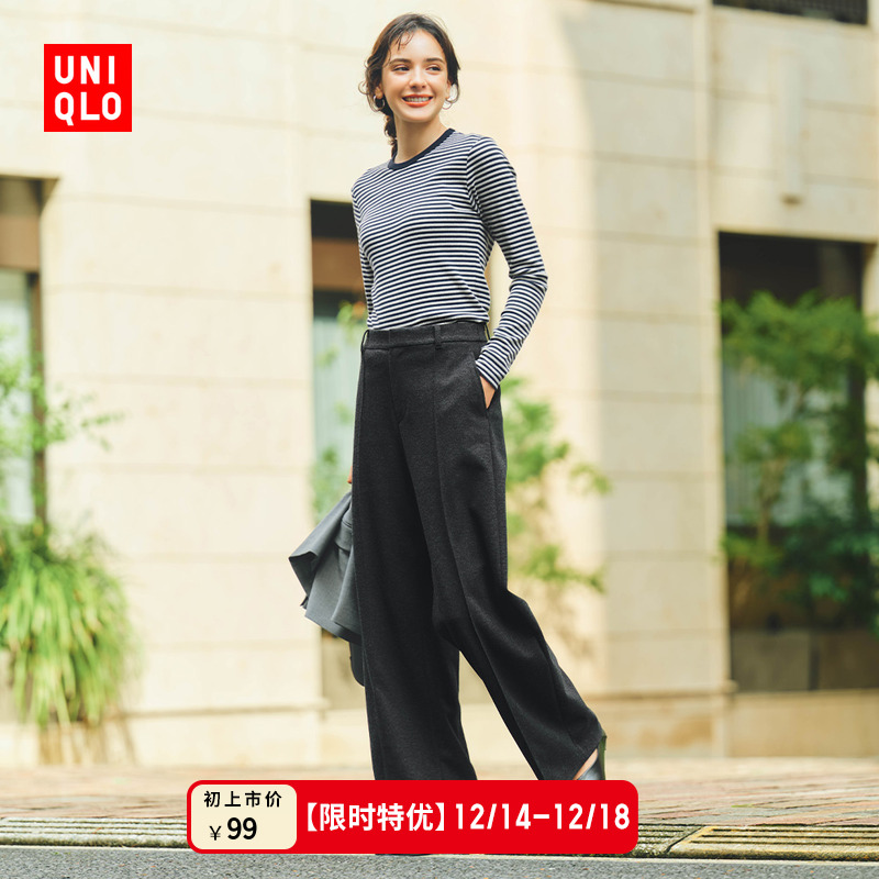 Uniqlo Women's Soft Ribbed Striped Crew Neck T-Shirt Long Sleeves Versatile Underwear with New Autumn and Winter 480036 Inside