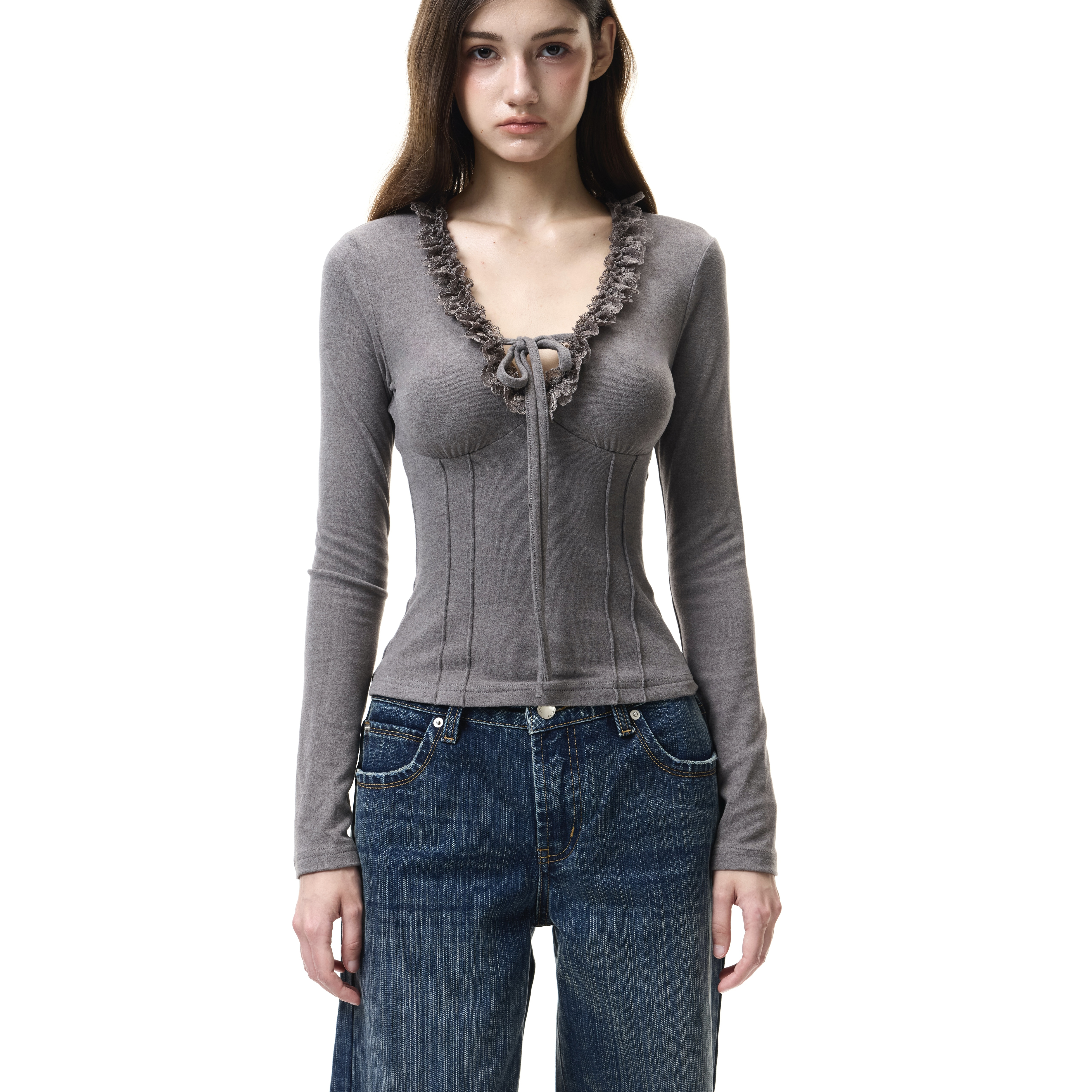Fri11 brushed lace lace variety lace-up long sleeve autumn/winter base