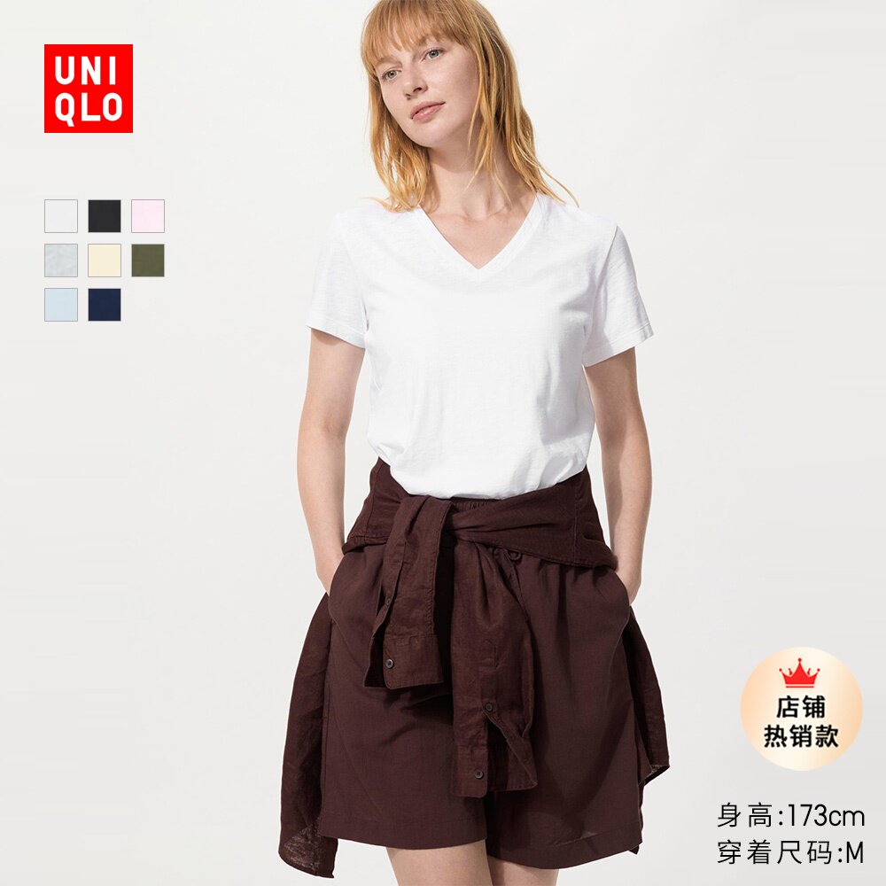 Uniqlo Women's Ribbed Henry Collar T-Shirt/Long Sleeve Slim Short Inner Bottom 479591 487908