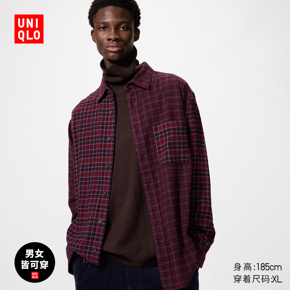 Uniqlo men's women's flannel plaid shirts long sleeve shirts and coats 485133