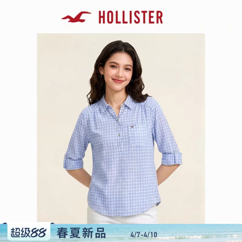 【New Color Added】Hollister Little Seagull Pattern Classic Three-Button Shirt Women's 340-6146