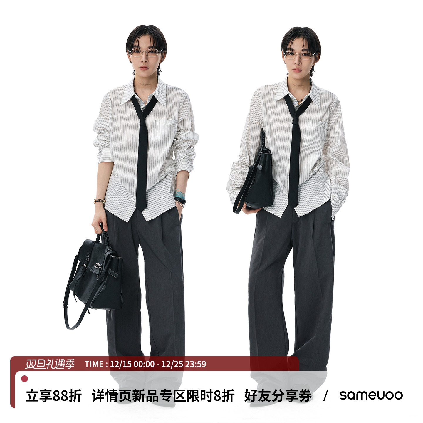 sameuoo free-range culture "Yinying" waist shirring modern neutral with white striped long-sleeved shirt