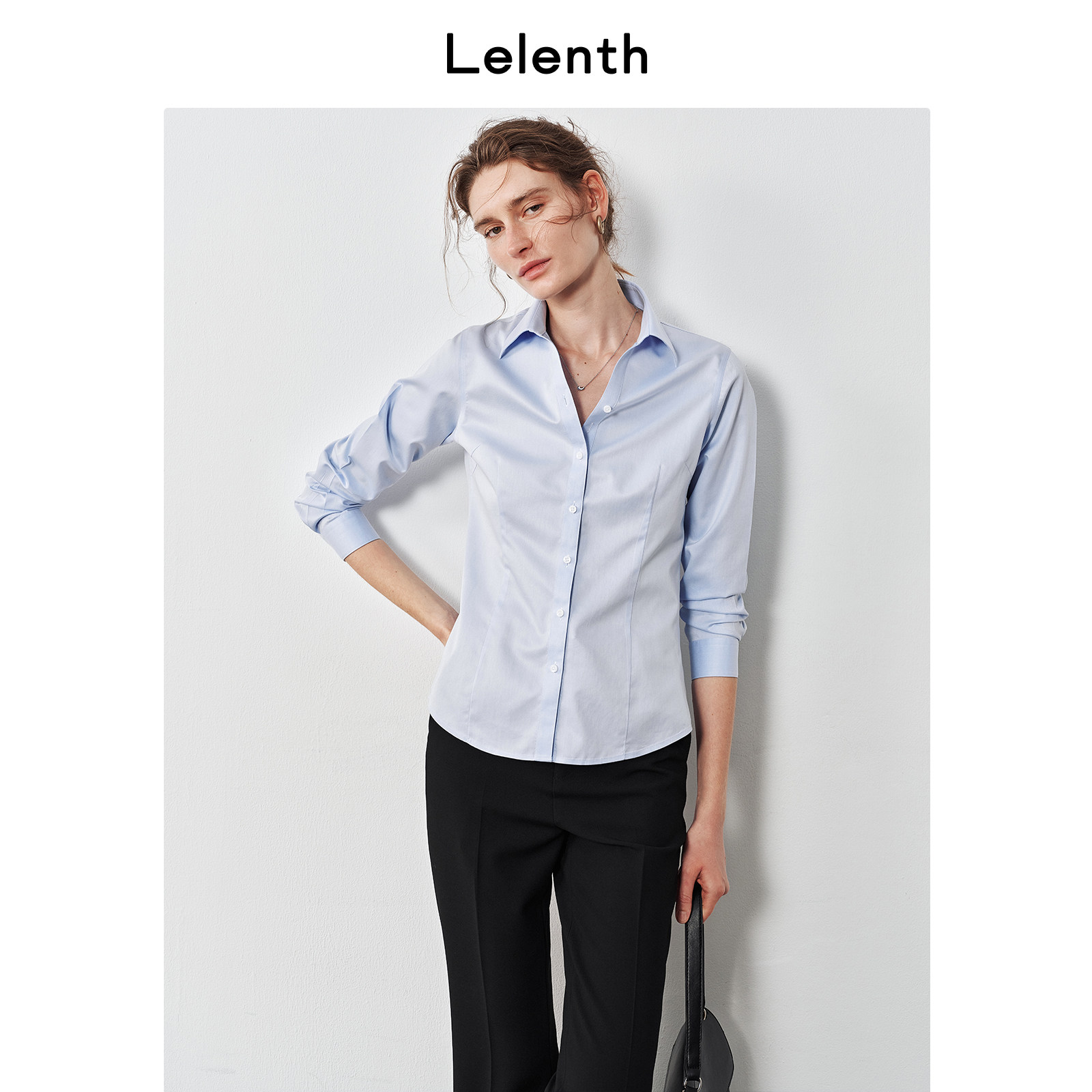 【Pure cotton iron-free】Lelenth V-neck professional blue shirt female anti-wrinkle public examination interview shirt suit underwear