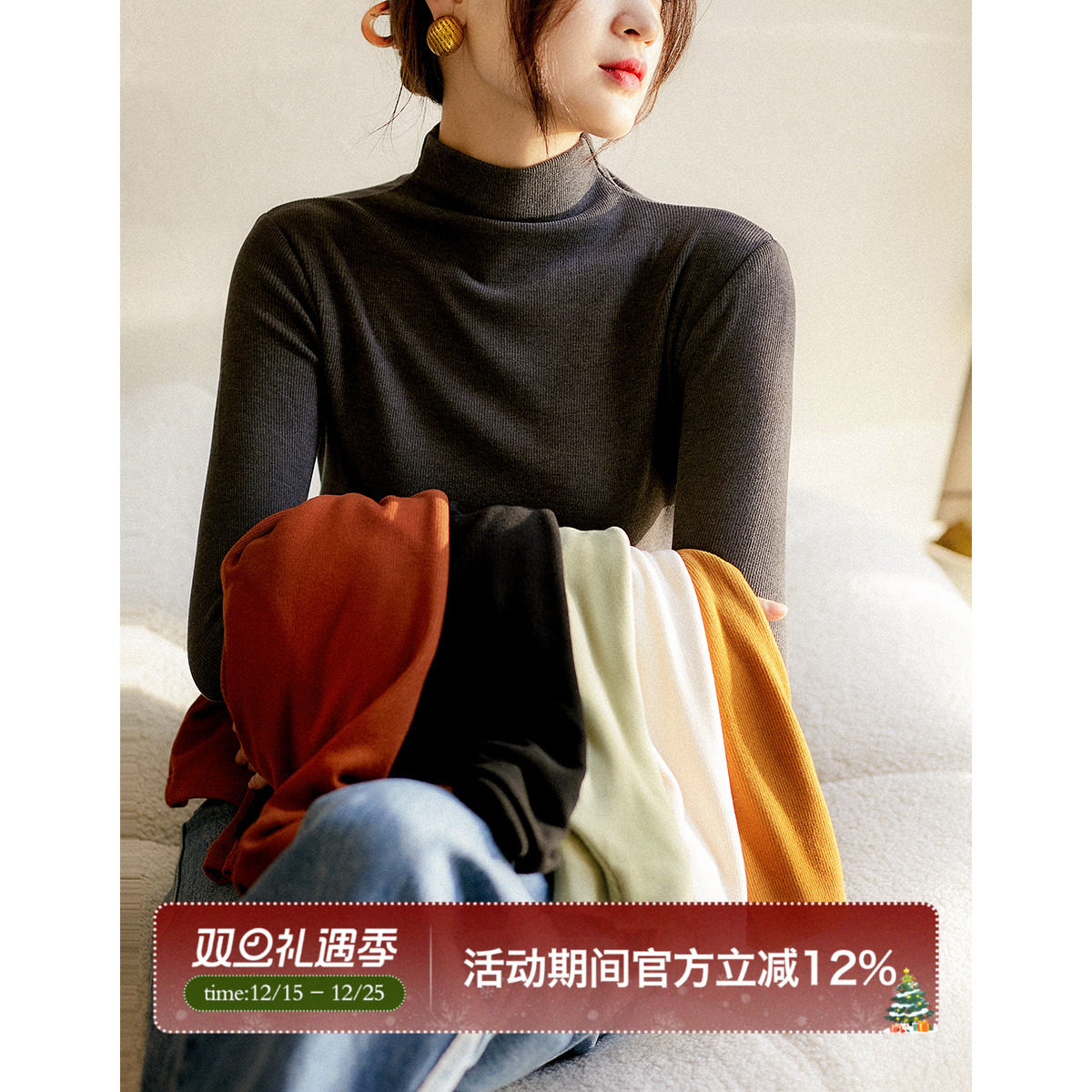 【Word-of-mouth hot sales】Xiaohan 25 autumn and winter long-sleeved slim crew neck with a half-turtleneck base shirt woman