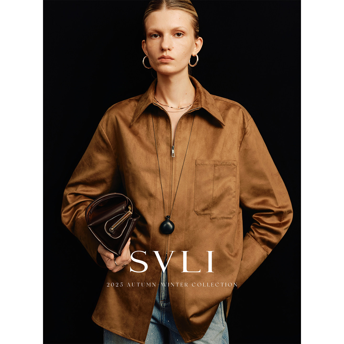SVLI|''Two-way Rush'' series of soft and warm suede and velvet embroidery two-way zipper large silhouette shirt jacket