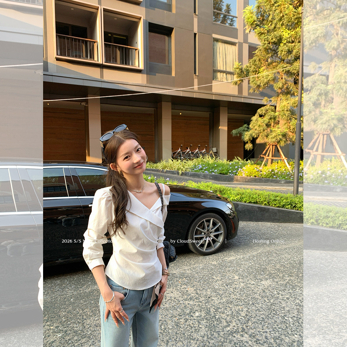 CloudSweet white cloud sweet high intelligence Korean woman versatile minimalist spring and summer white shirt women's design short top