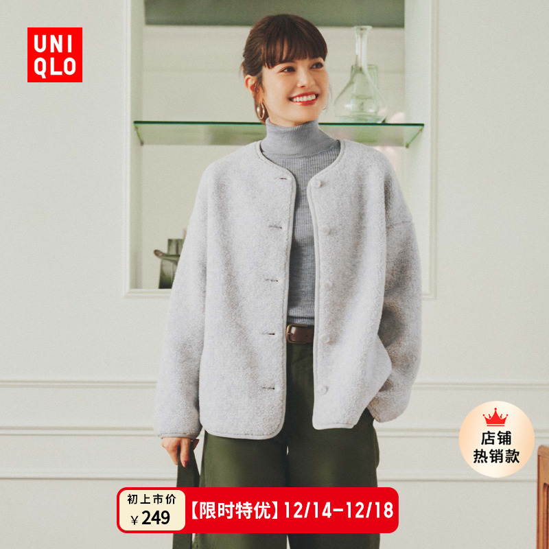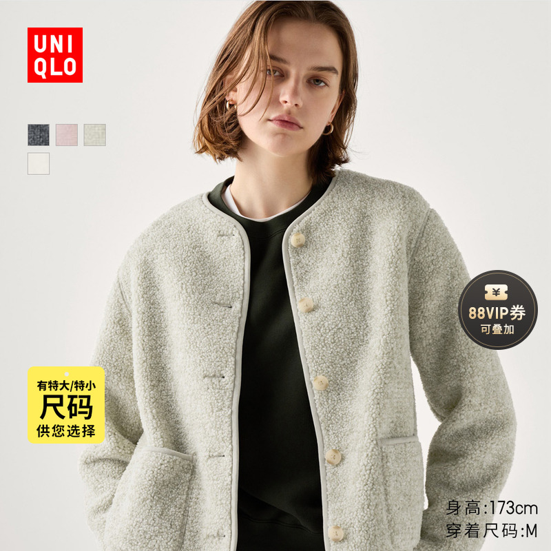 Uniqlo women's men's imitation lambswool fleece casual cardigan long-sleeved loose jacket winter new 479616